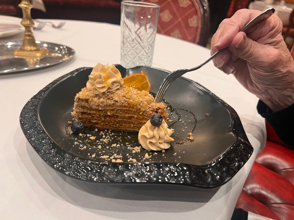 The sitting area of our room at the Bey House Royal Hotel. Duke’s lamb shankMy honey cake.