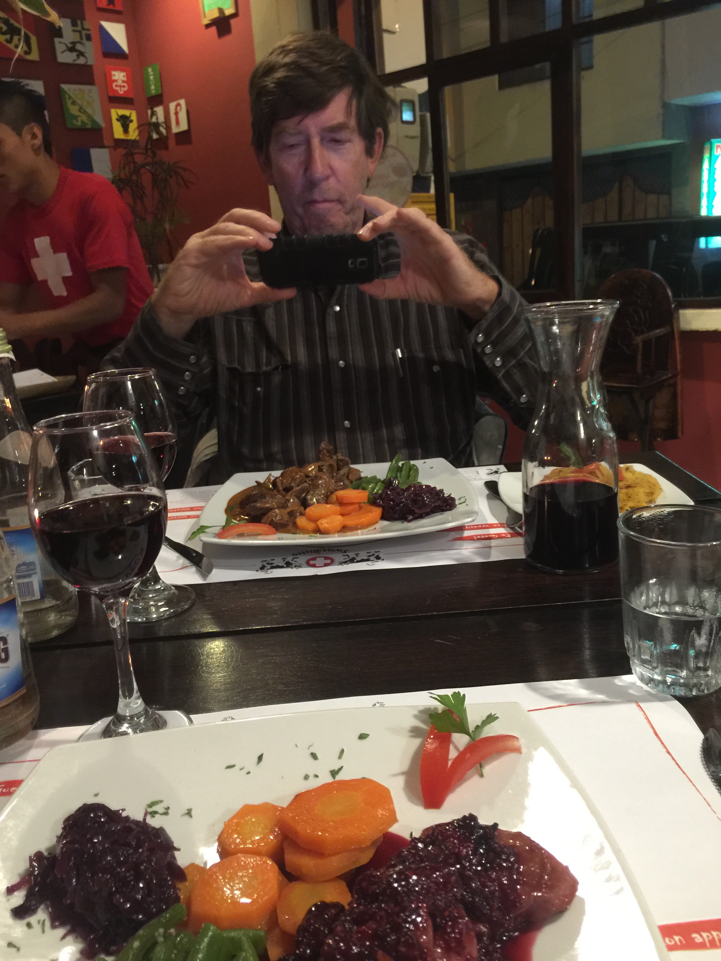 By the time we went to dinner the rain had stopped. We ate at a Swiss restaurant. I had a wonderful pork tenderloin in raspberry sauce and Duke had beef stroganoff.