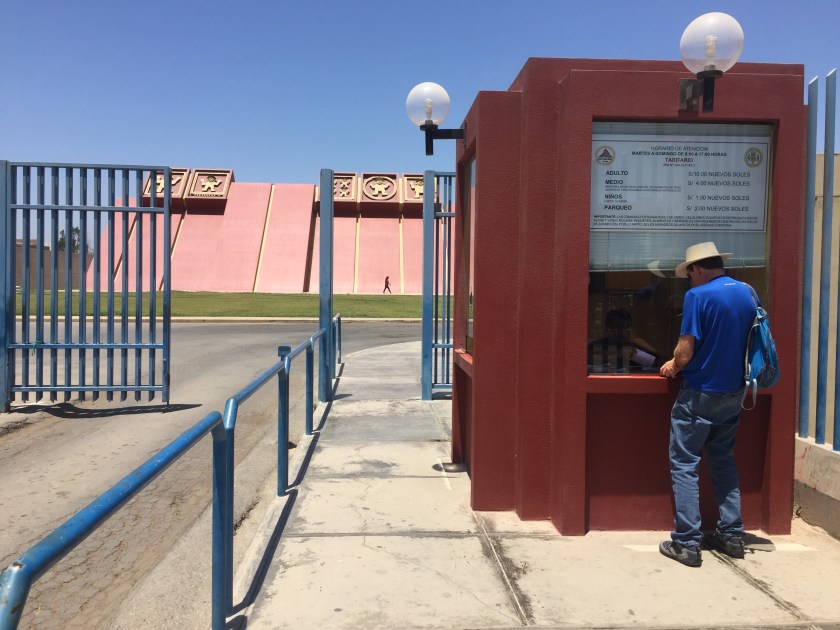 After checking out of our hotel at noon and storing our bags in the hotel luggage room they called us a taxi. The taxi driver took us to a nearby town to see the Museo Tumbas Reales de Sipán. In 1987 an archaeological exploration found three undisturbed tombs near the town of Sipán. They are attributed to the Moche culture and are dated to about 300 AD.