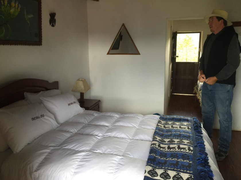 We knew there was no food service at the lodge so we bought bread, cheese, crackers and peanuts before we left Chachapoyas. We walked about 20 minutes down the road to a village and bought two bottles of beer. Then we sat an a blanket and had a picnic outside our room.