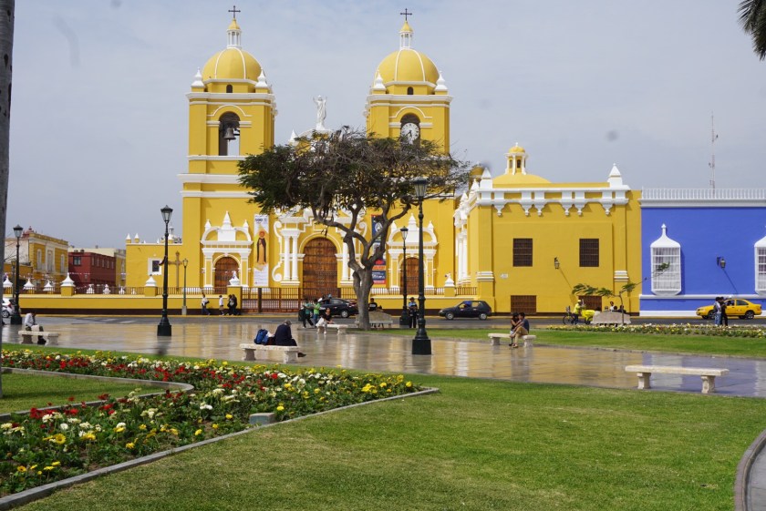 Sunday is a  busy travel day. We arrived in Trujillo about 1:30. The next bus to Chimbote where we planned to spend the night was soldout so Duke bought us tickets on the 6:20 bus. This gave us a chance to walk about Trujillo a bit and have some lunch.