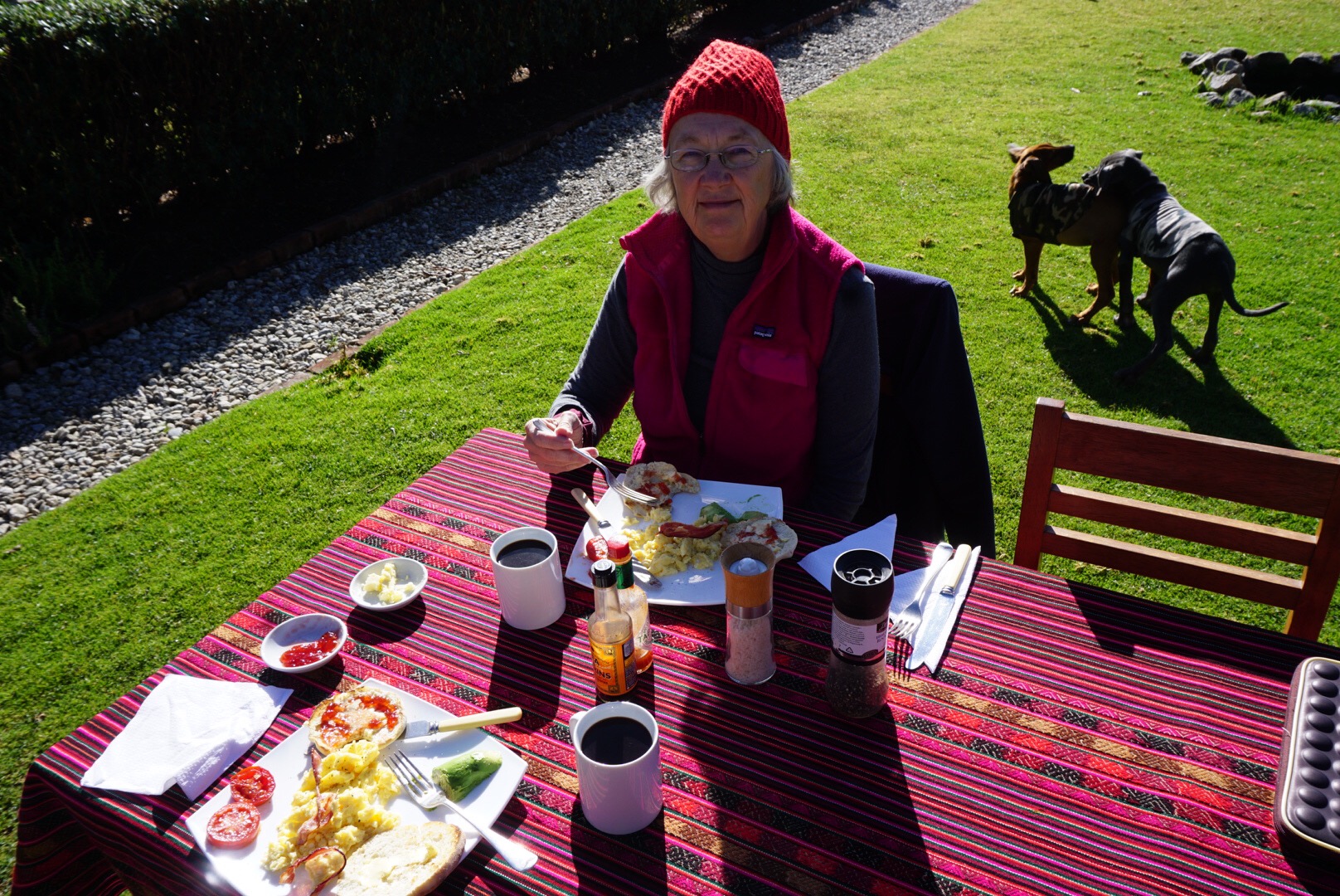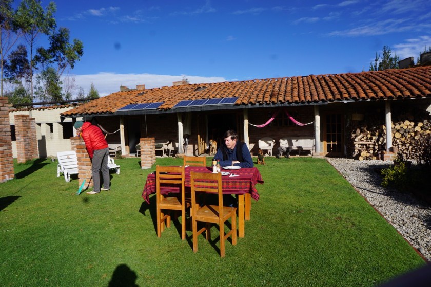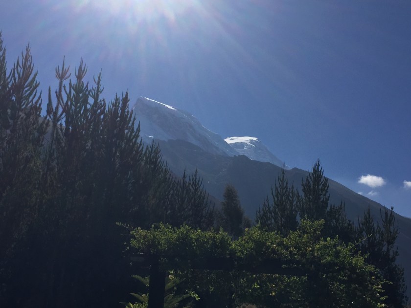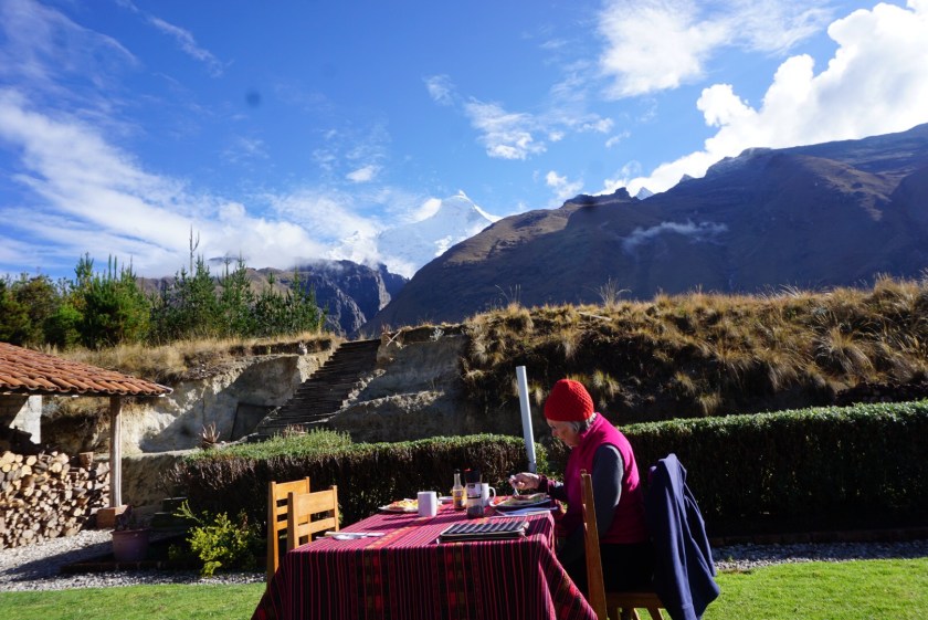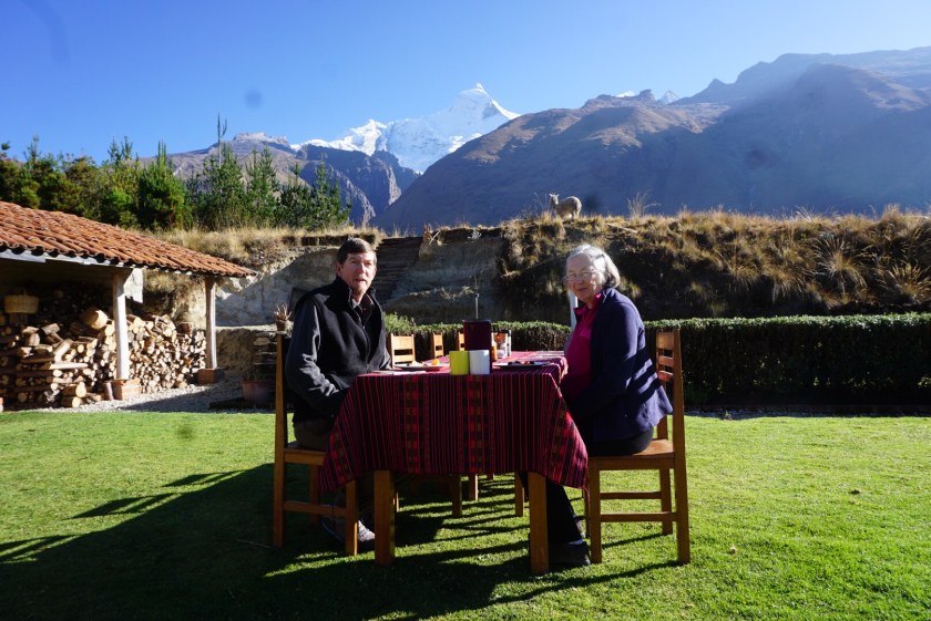 This morning we had our last breakfast at Llanganuco Mountain Lodge. It was another beautiful sunny morning. After packing we sat and read on the terrace until our taxi picked us up at 11. The taxi took us back down to Yungay where we caught a collectivo to the town of Huaraz where we are staying tonight.