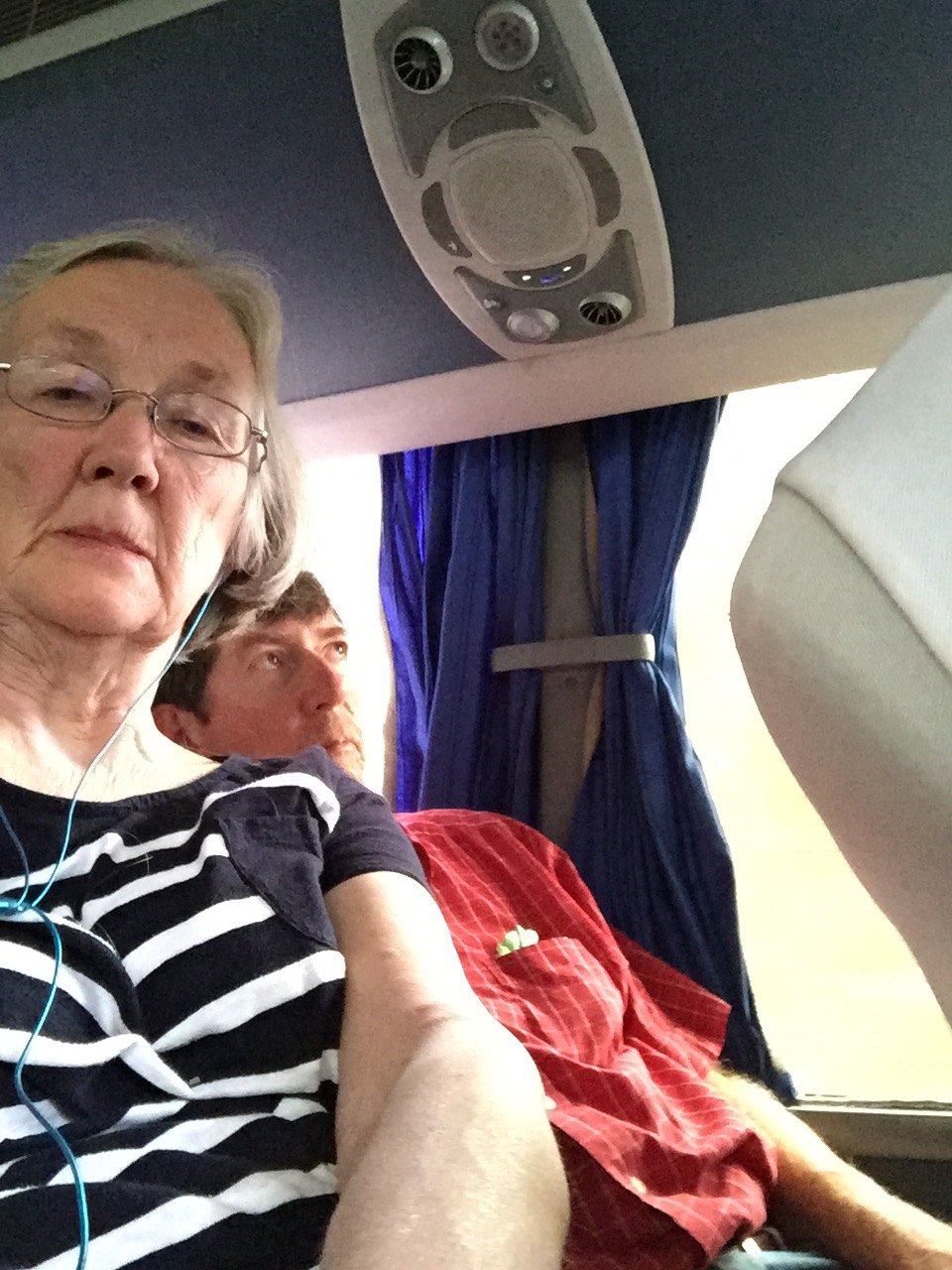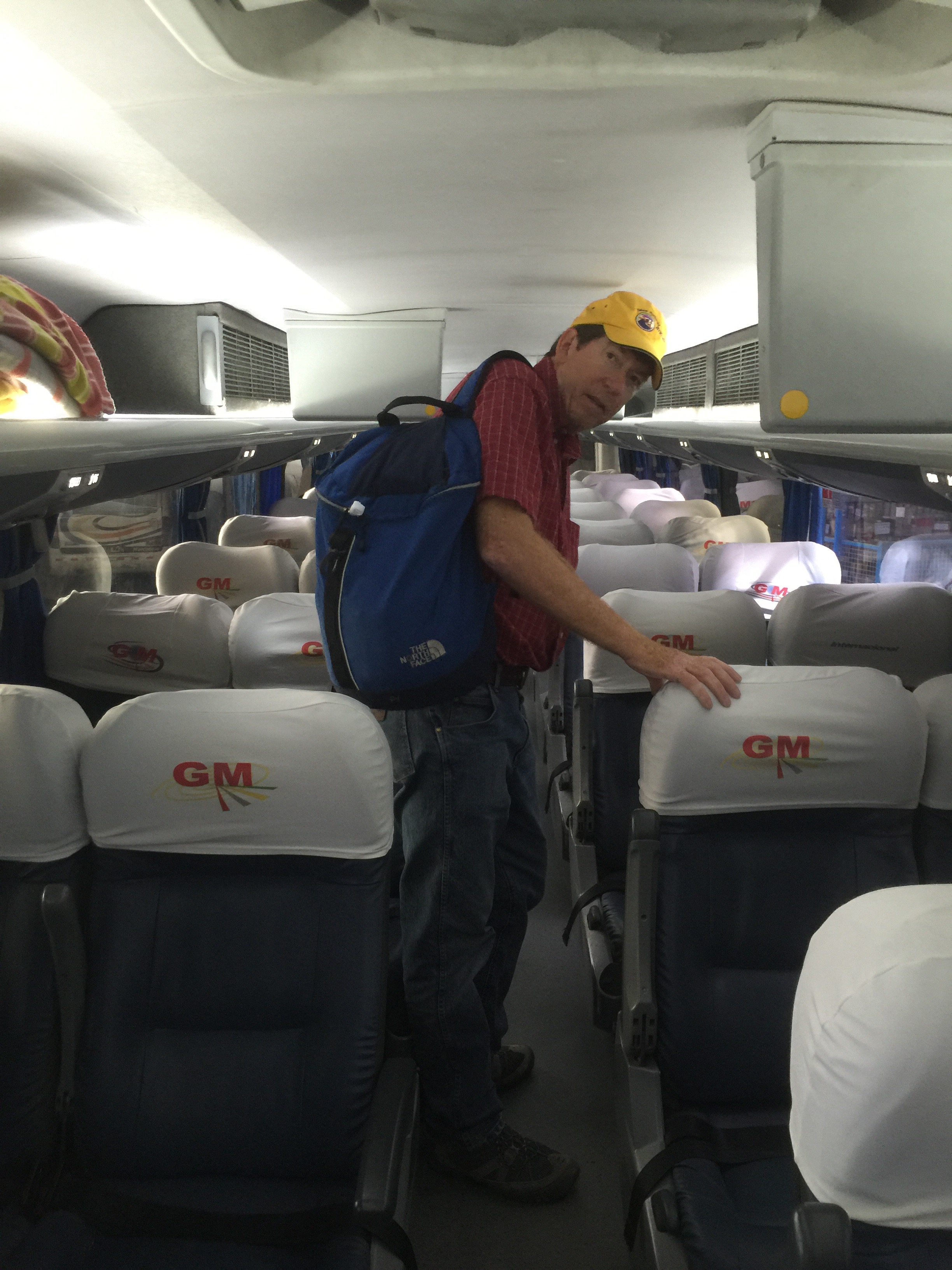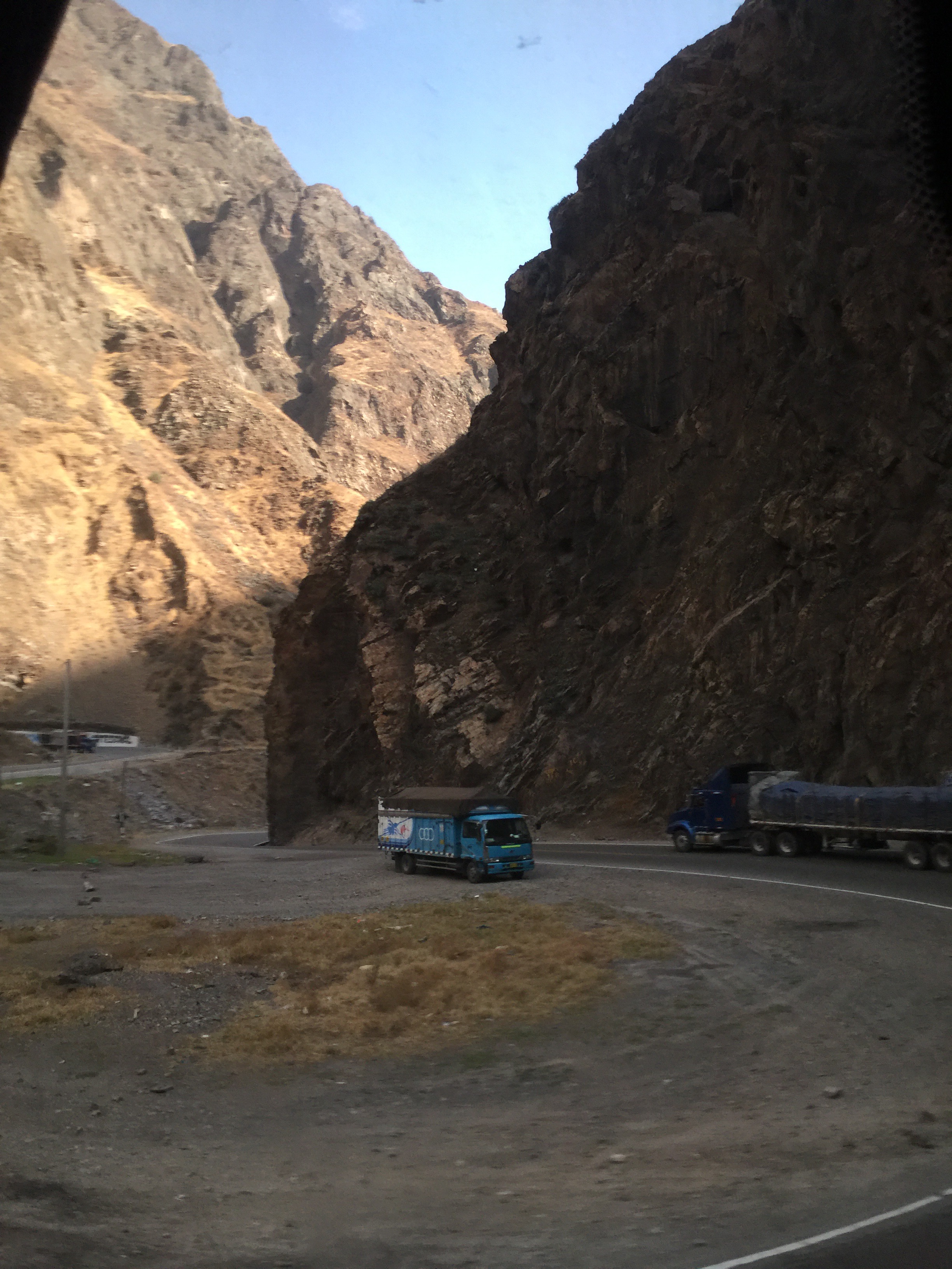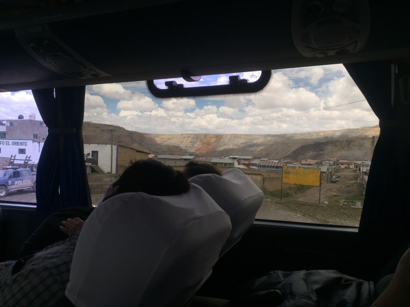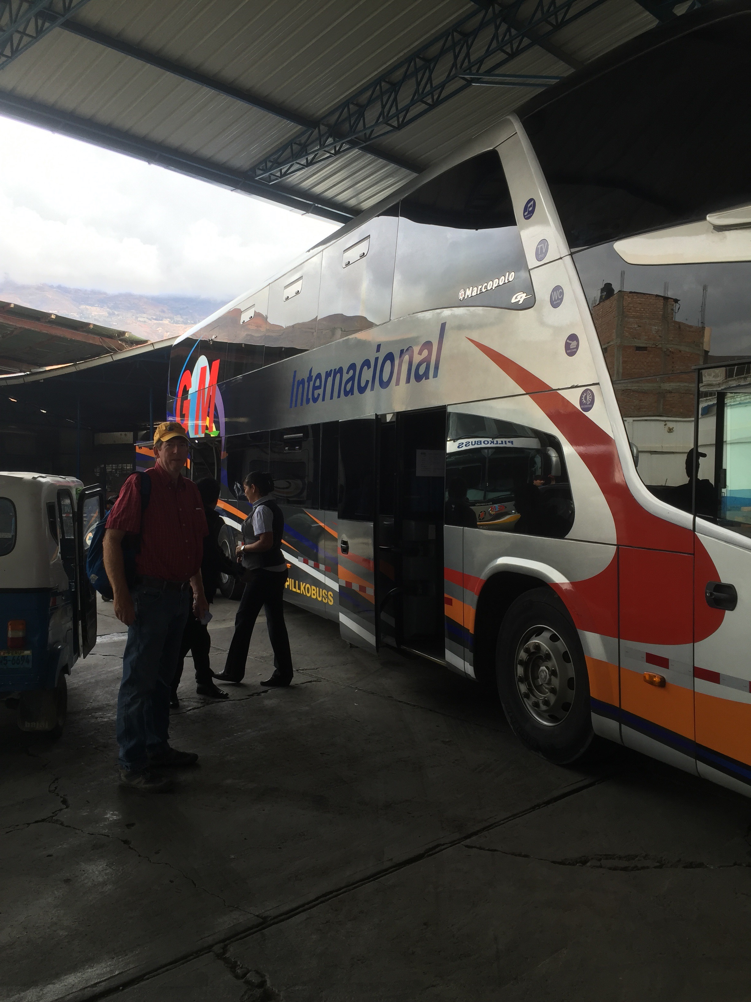Today we spent almost eleven hours on a bus going from Huánuco to Lima. Altitudes again – Huánuco is at around 6,000 ft. We went up to over 14,000 feet and the down to sea level at Lima. We caught the bus in Huánuco at 8:30 this morning. The big seats downstairs were already booked when we bought our tickets so we were upstairs. The seats look like they have a lot of leg room until the seat in front of you reclines into your lap! It was a tiring day. I listened to almost all of season two of the podcast Serial.
