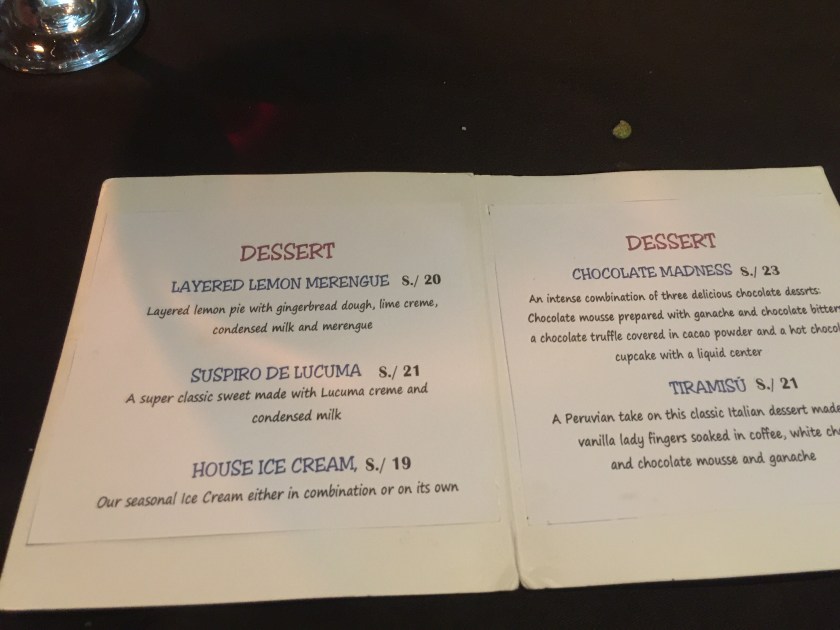 We had dinner at Uchu Peruvian Steakhouse. Tripadvisor must have really changed restaurants in places like Cusco. Uchu is highly rated on tripadvisor. We had a fabulous dinner. We shared ceviche.