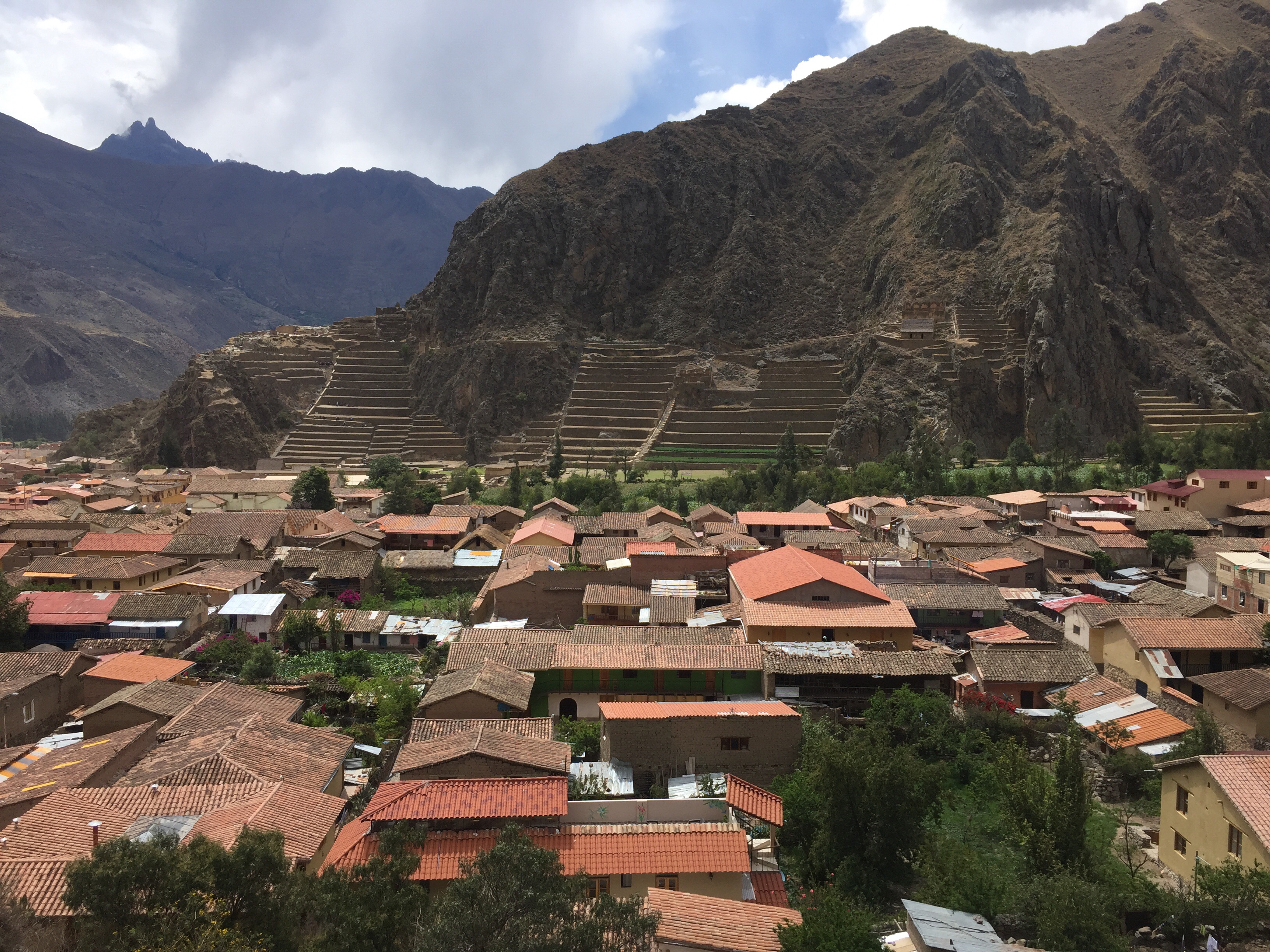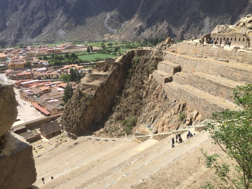 This morning we explored the fortress of Ollantaytambo. The ruins are built into the mountain right on the edge of town. There are massive stone terraces and structures. Ollantaytambo is at the junction of two rivers and this fortress is the site of a battle in which the Inca beat the Spanish at least initially. The water system is prett impressive too. We climb up to the top on one side and then back down on the other.