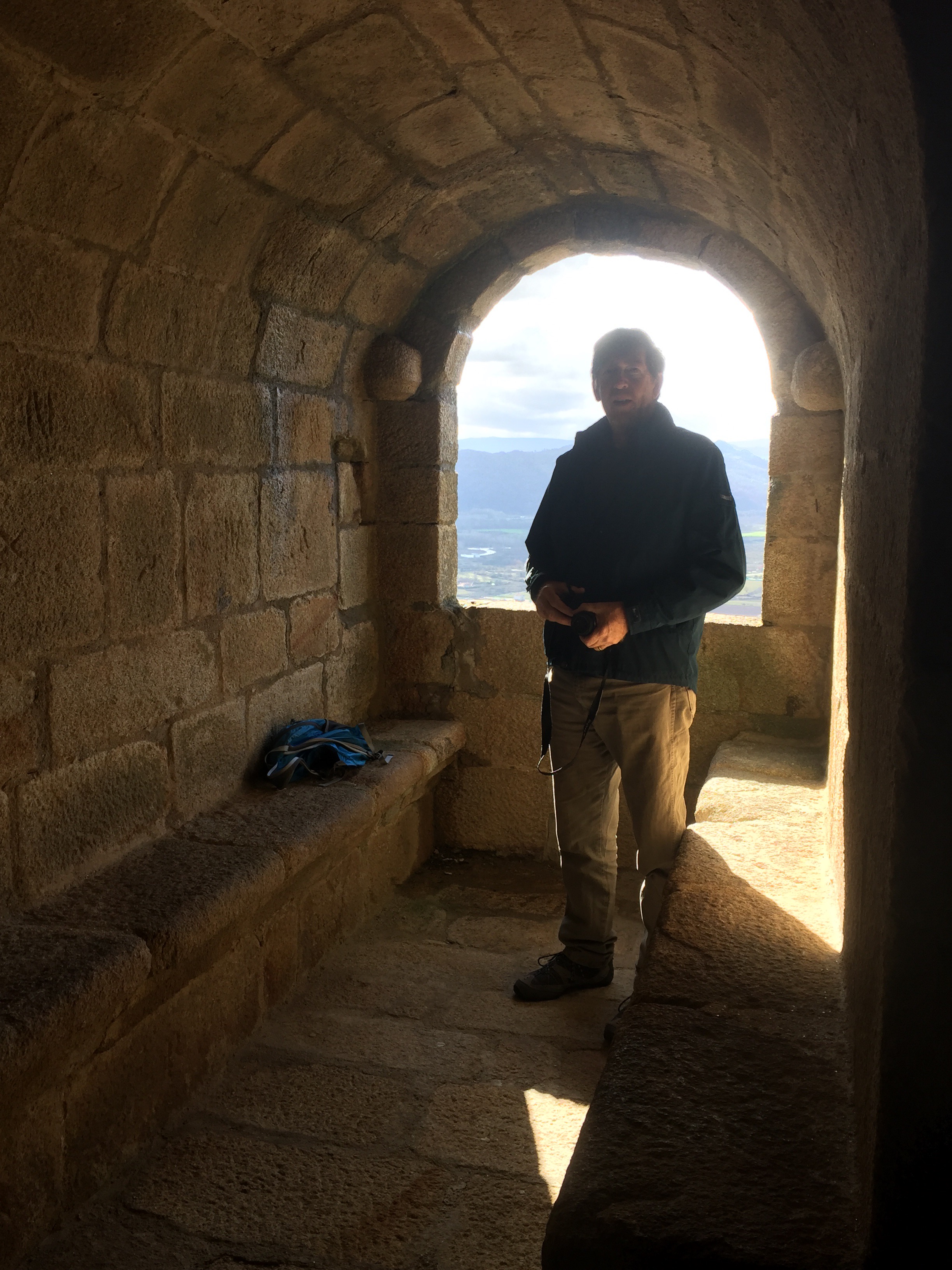 After arriving at Castillo de Monterrei today we took a tour of the castle and climbed both towers. The guide told us the history of the castle and the church. I was impressed with the size of the key to the church, the thickness of the walls, and the commanding views. We are only 10 kilometers from Portugal. This castle was built for defensive purposes.