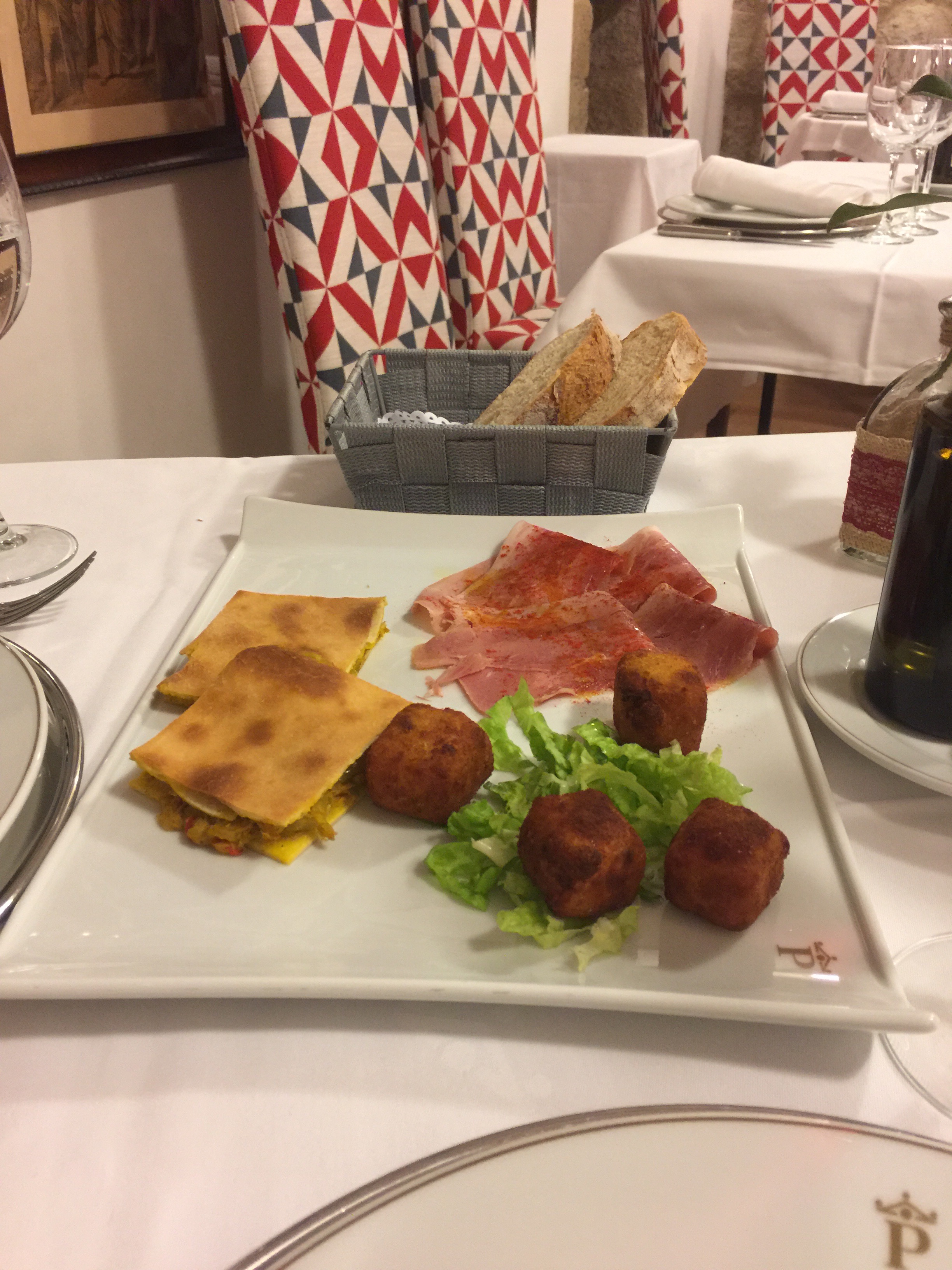 As you can tell from my posts so far Duke and I really love Paradors. Paradors are a government run hotel chain. In our experience each one is unique but the quality is dependably high. They are often located in historic buildings like castles or monestaries. The one we are staying into tonight opened in 2015 but it is in a castle that was built in fourteenth century.