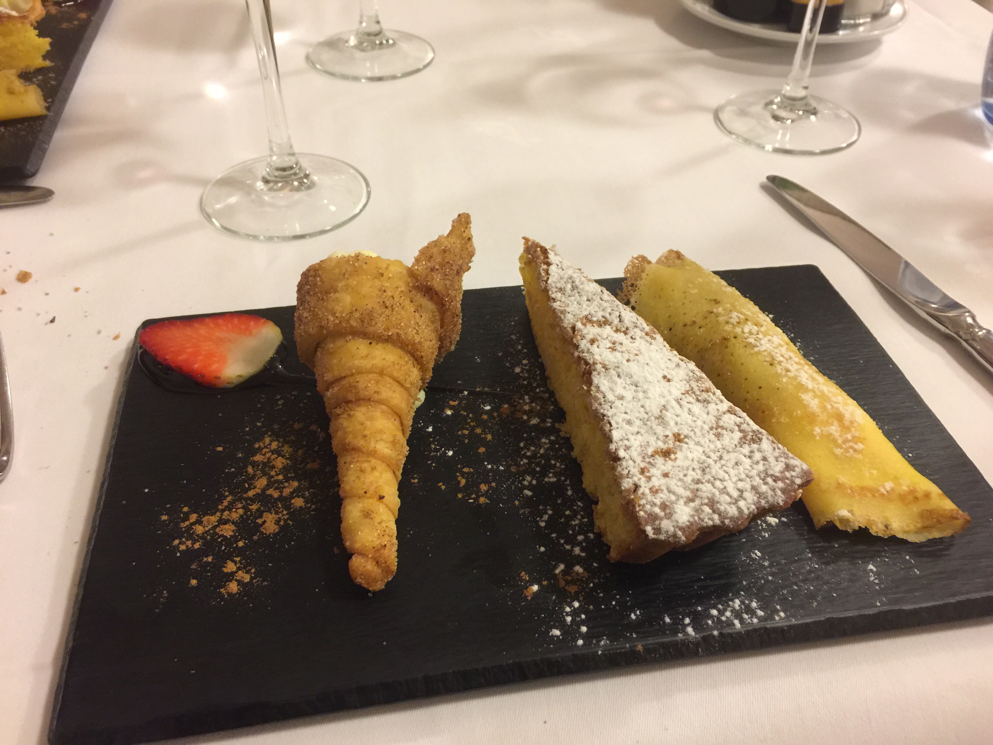 We have a package deal here that includes dinner and breakfast. The restaurant doesn’t open for dinner until 8:30. We have adjusted our schedule to stay up late and sleep in on the morning. Our meal tonight was wonderful. It was called the Monterrey Traditional menu.