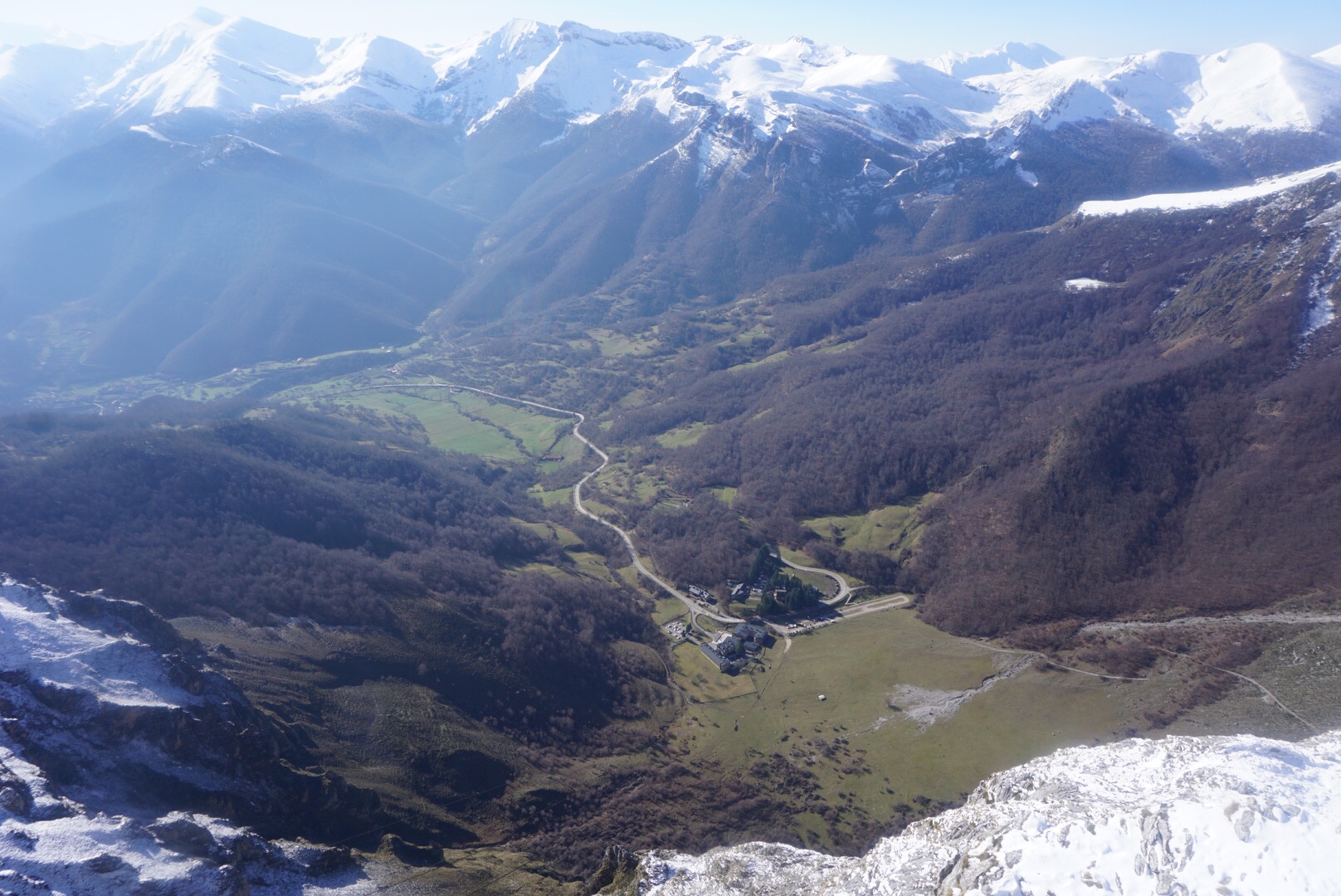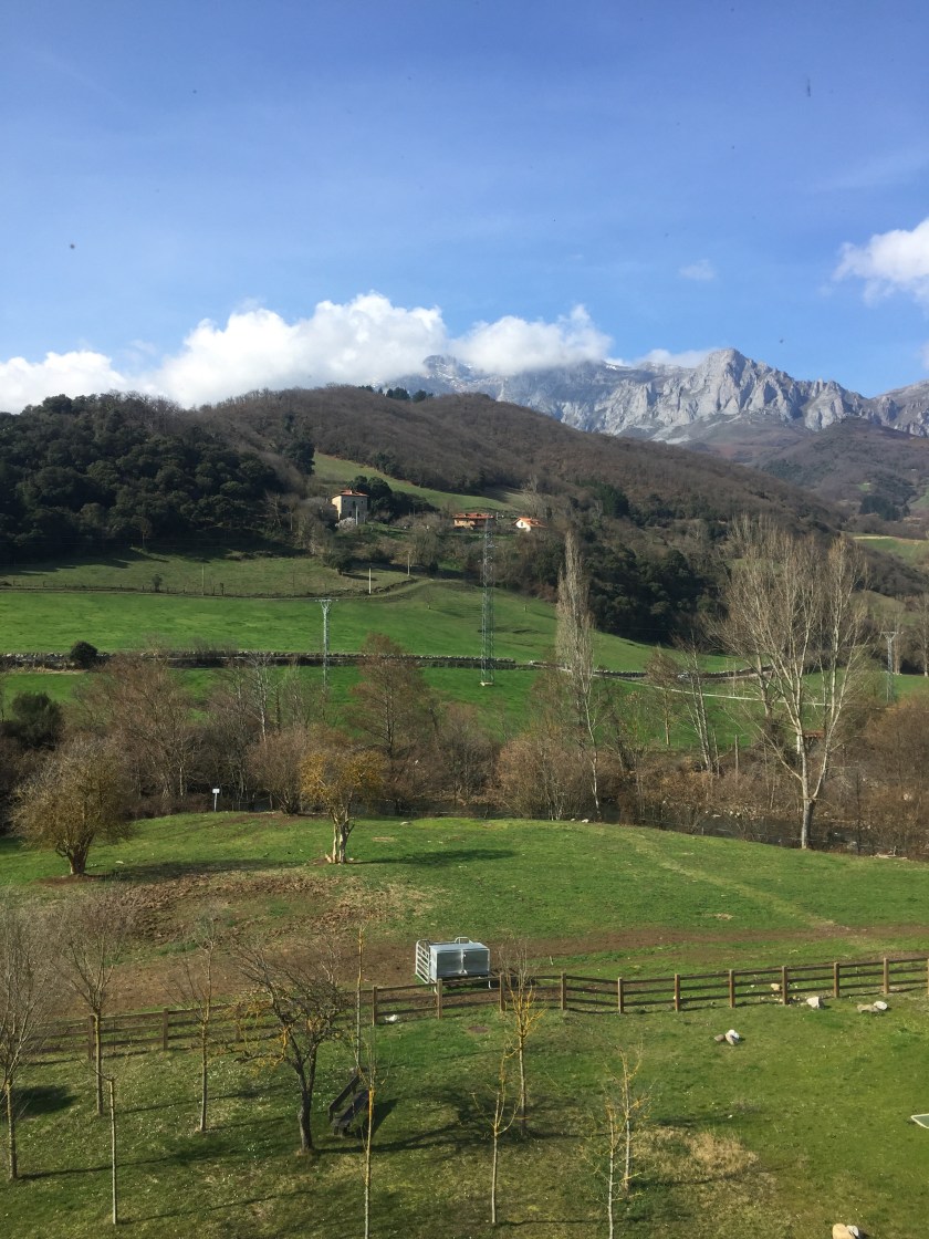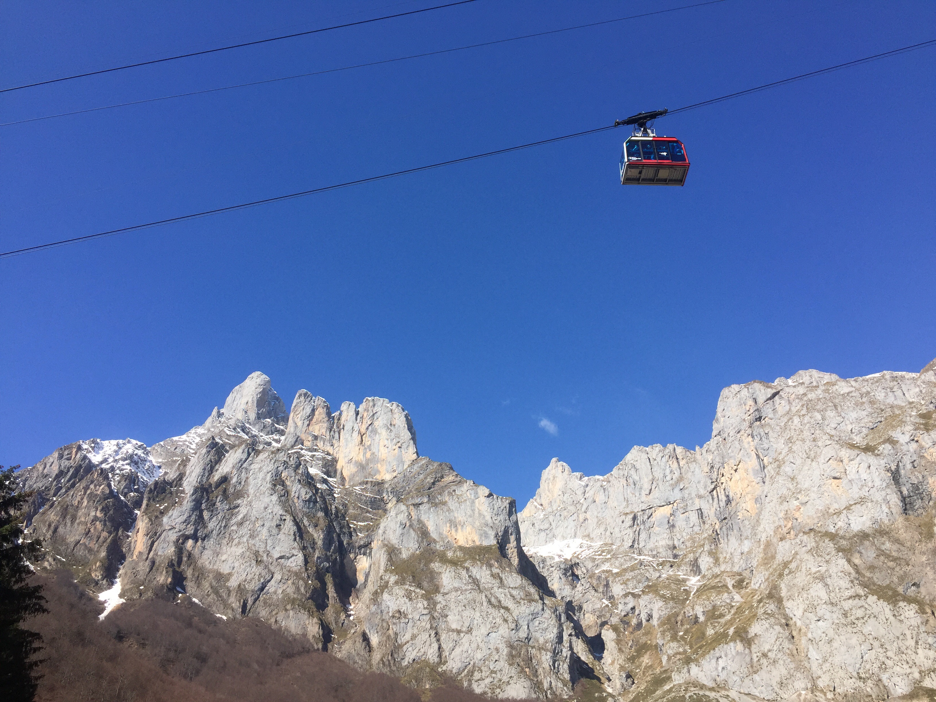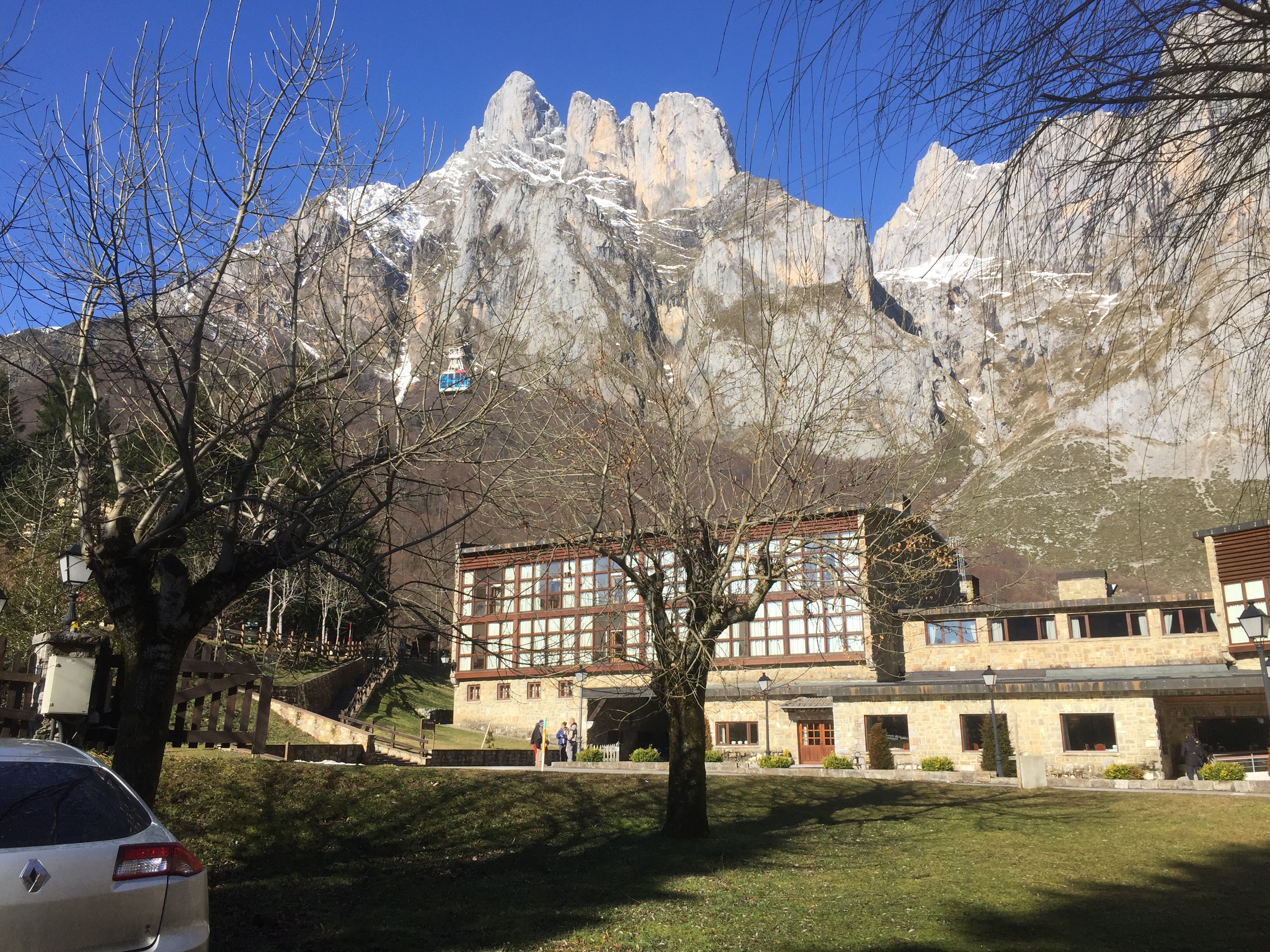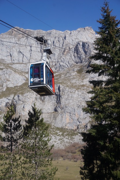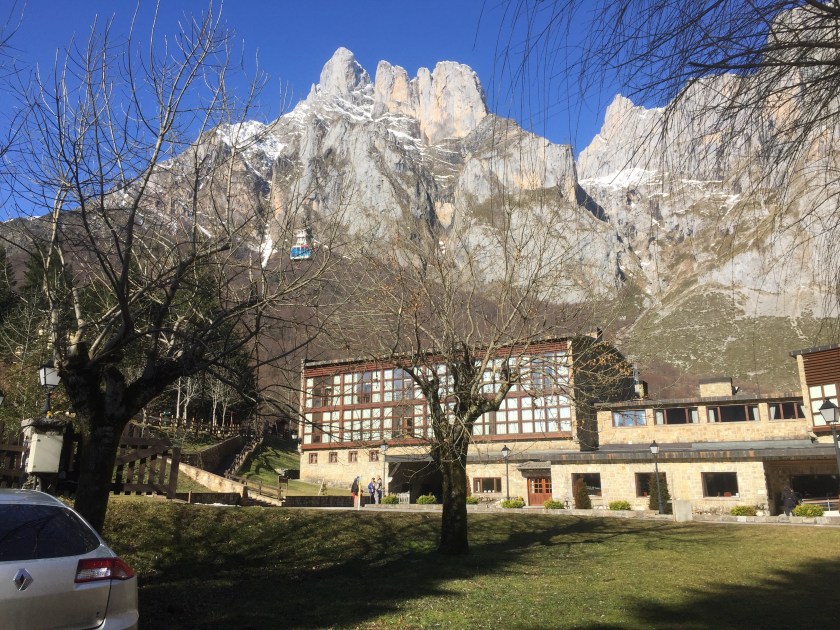We woke up this morning to sunny clear skies. Overnight it had snowed on the mountains around us but not down at the Fuente Dé Parador.