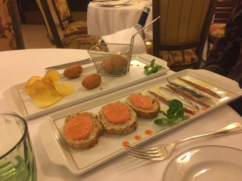 Duke had a half plate of anchovies and a half plate of croquettes.