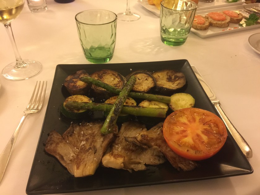 For dinner I started with roast vegetables. The fan shaped things are mushrooms.