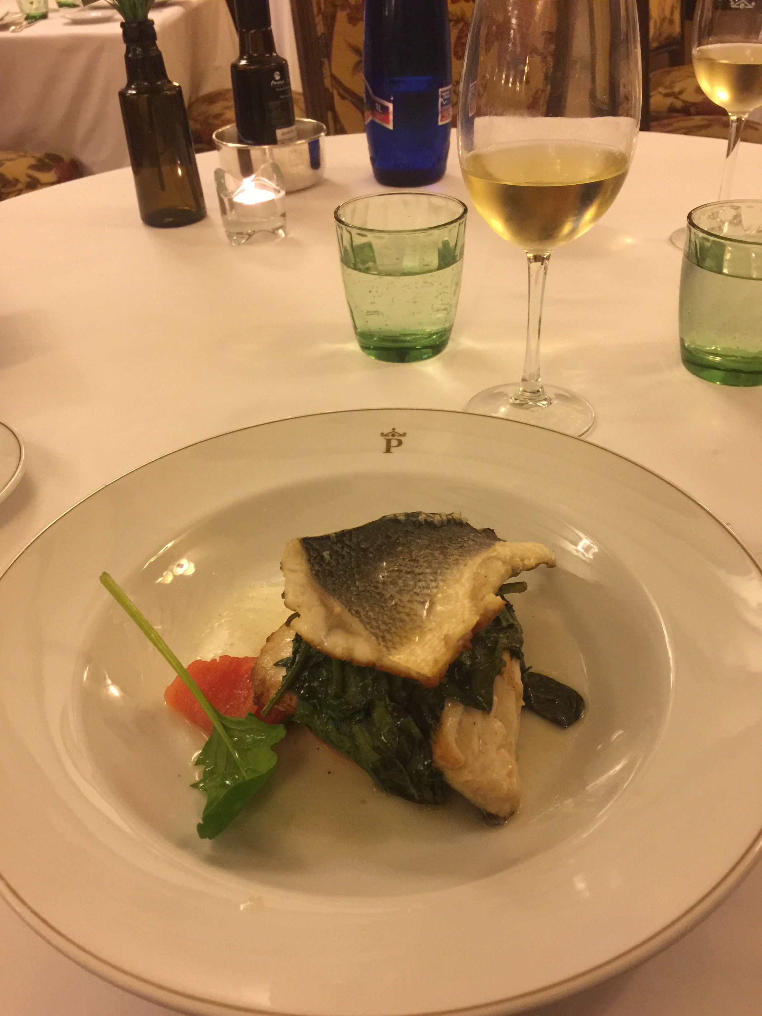 We each had sea bass with spinach as our main course.
