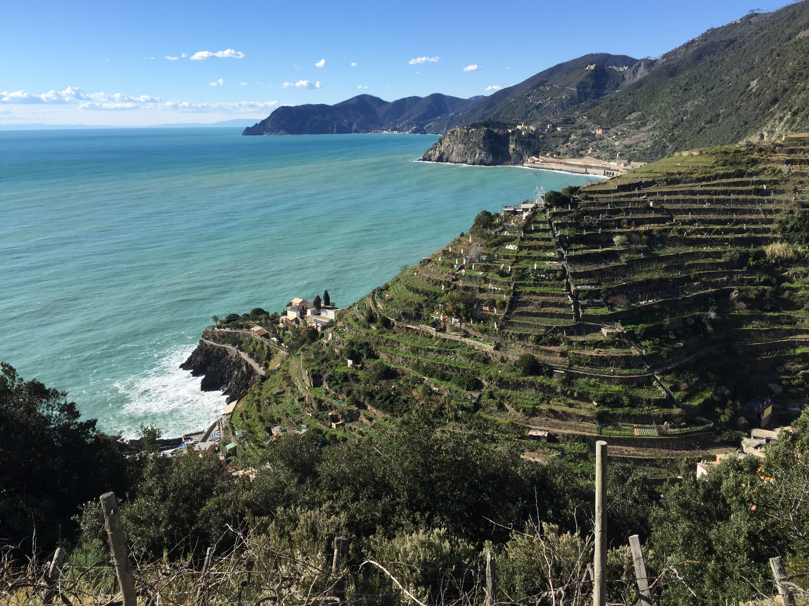 The lady at the tourist information office explains that the hike from Manarola to the town south of here is only about a kilometer but it is all steps up and then steps down. We hiked and she was right. We went up up up sometimes climbing on the rocks. The views were stupendous.