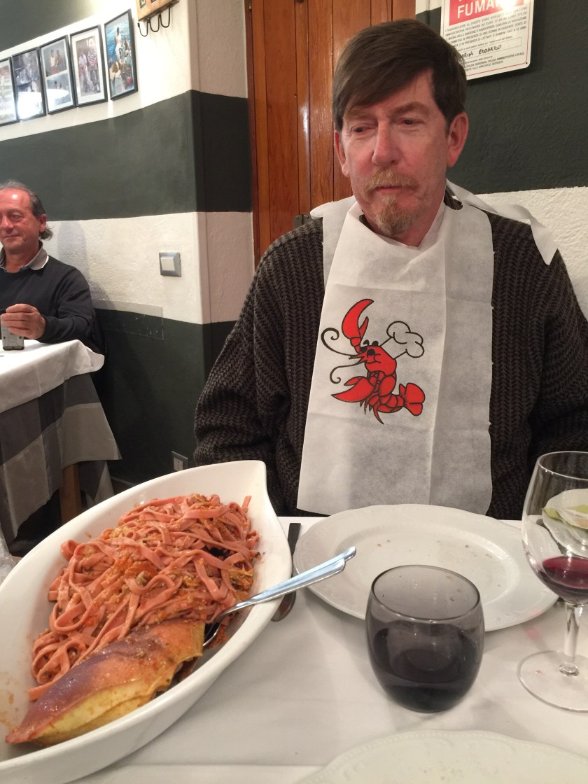 For dinner we ate at a little ten table seafood restaurant that we had to climb up to and then walk along a pedestrian path to get to. We shared home made pasta, and crab.