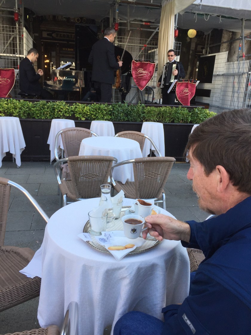Thanks to a recommendation from my friend Marty we made a point of stopping at Cafe Florian on the square. It was established in 1720 and bills itself as the oldest cafe in Europe. We sat at an outside table in the square, listened to the live band and drank some wonderful hot chocolate. It will be a moment that is a highlight memory of our trip.