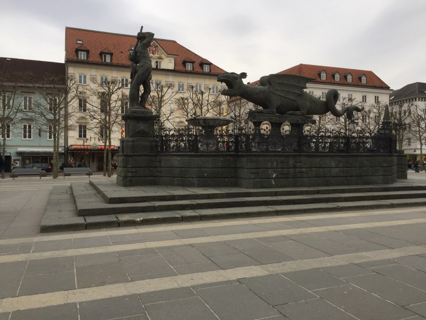 Klagenfurt is a nice town. The town symbol is a dragon. Our hotel is right behind the dragon in the picture.