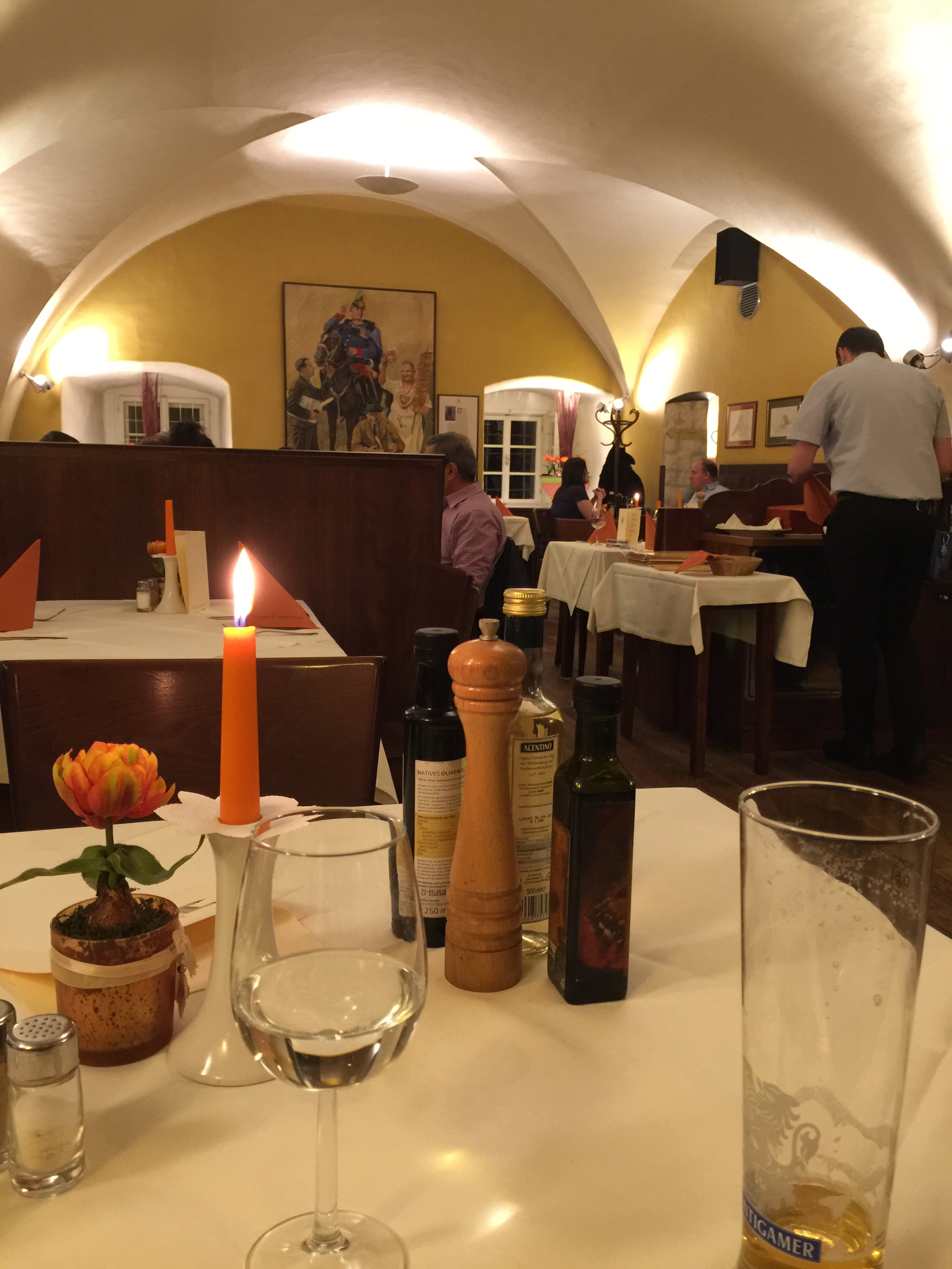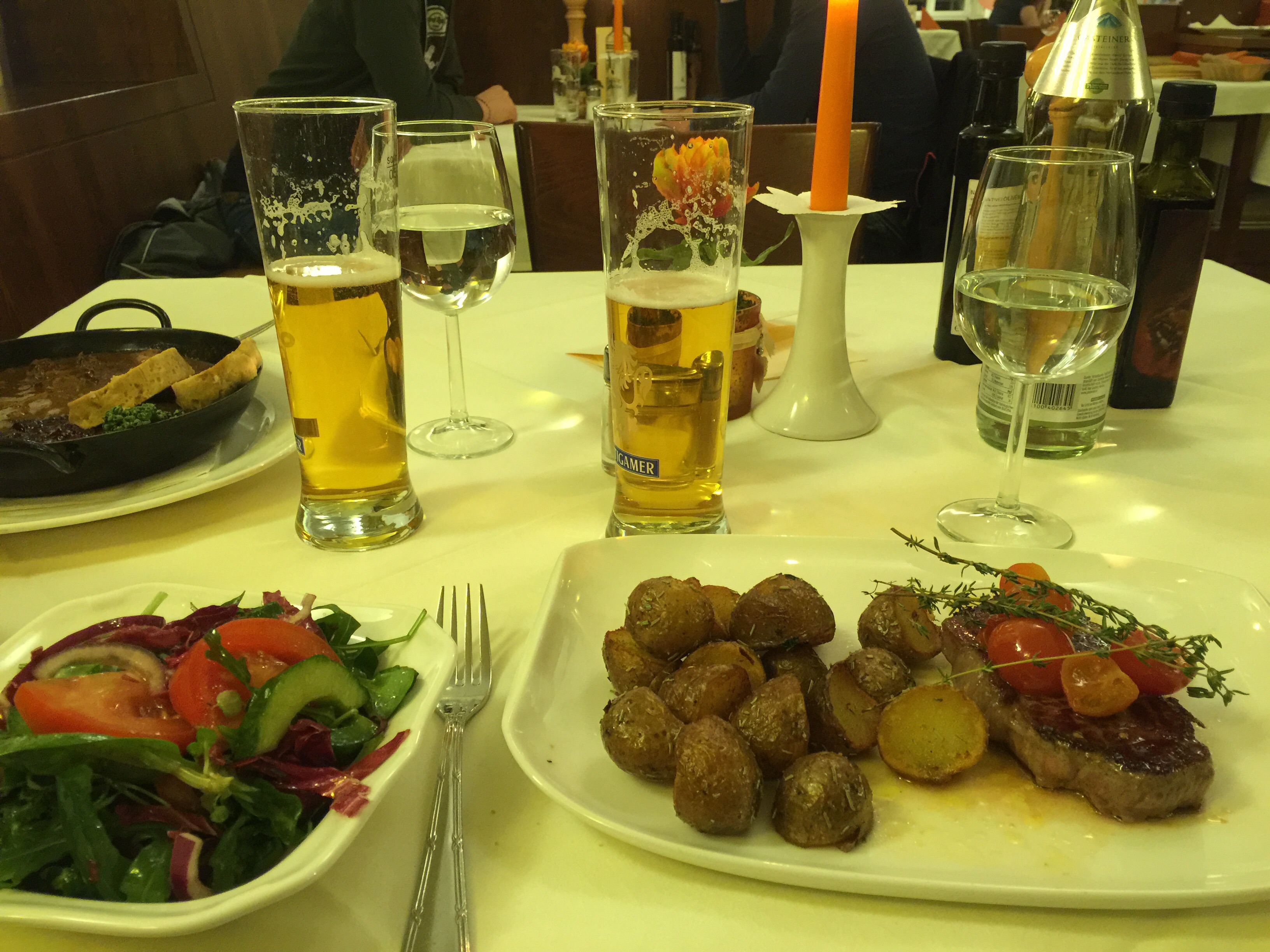 I had a steak with roast potatoes. And now that we are in a German speaking country we decided to have beer!