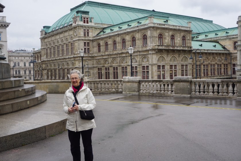 We put on our rain coats and took the subway into central Vienna. Although it was extremely windy the temperature was not bad (10 c/ 50 f). And although it rained on us a bit it was never a downpour and we managed to not blow away.