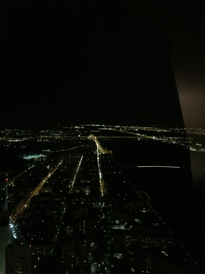 We took the subway back to our hotel and rested our feet for a while. Right now we are sitting in the lounge on the 57th floor. The view is stupendous The wind is blowing so hard that it is howling in the elevator shaft behind us.
