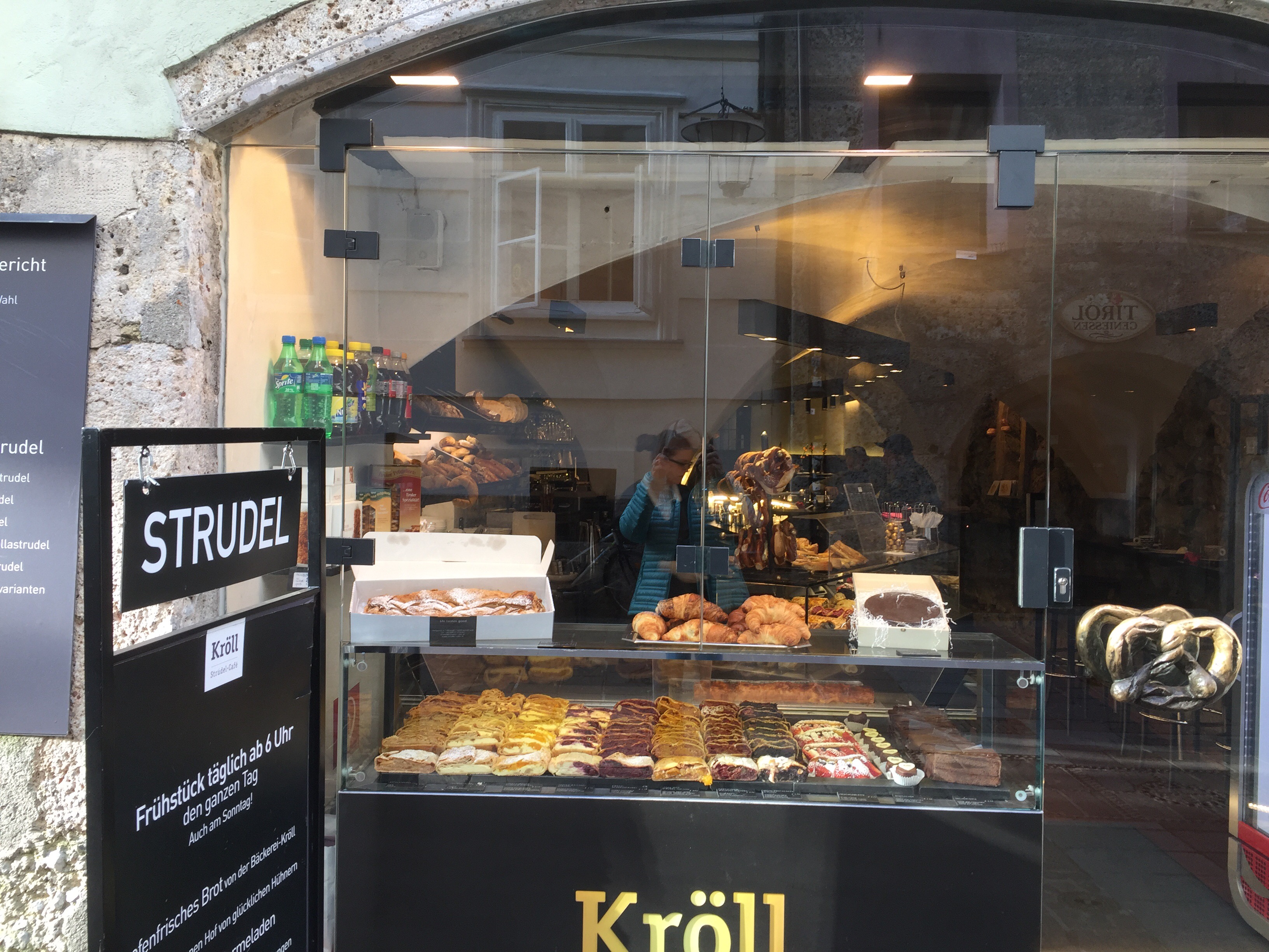 This morning in Innsbruck we had a yummy breakfast of pastries and coffee at the strudel shop just down from our hotel.