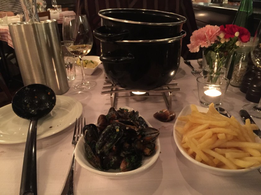 For dinner we shared mussels and fries and liver sausage.