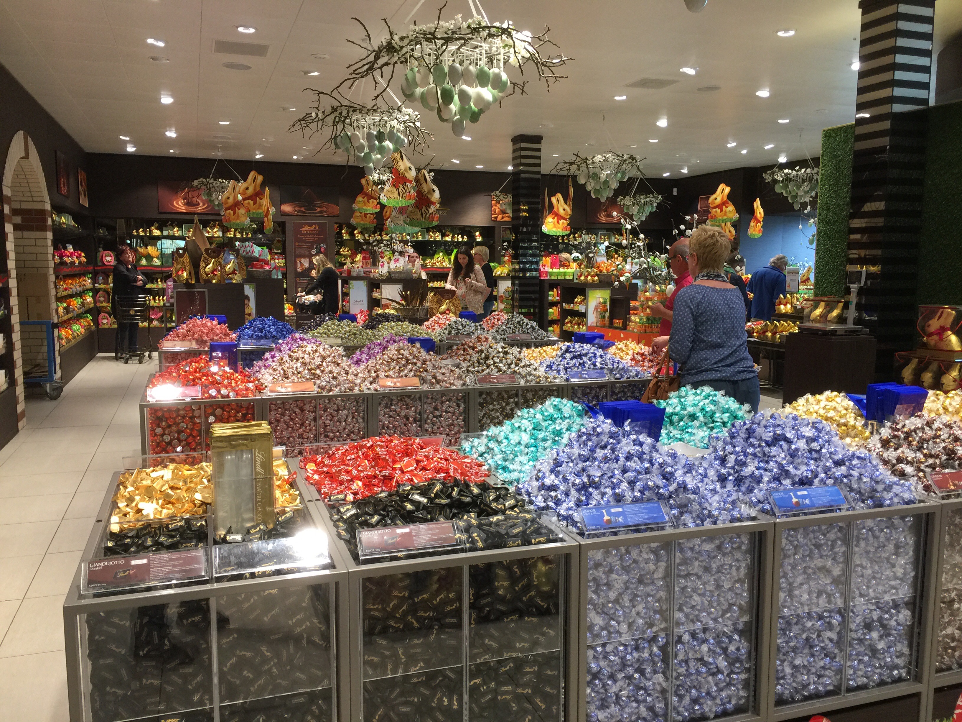 Tomorrow morning we fly to London and from there to San Francisco. So today was our last day being tourists. We started off by taking the bus out to the Lindt Factory Store. They don’t offer tours of the factory but as we walked by the factory the smell of chocolate was in the air. It made my mouth water.