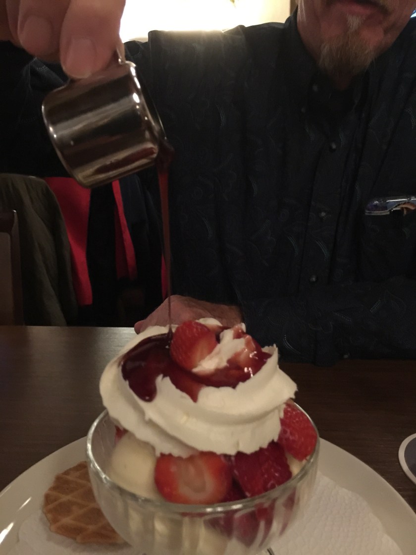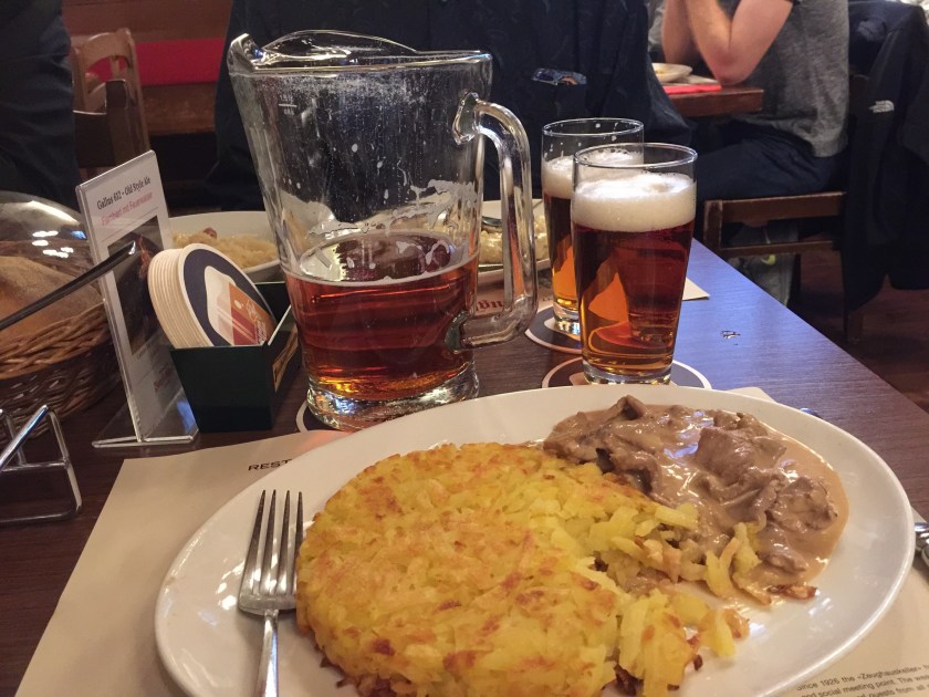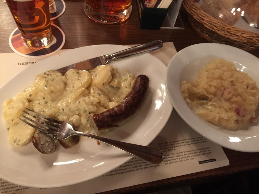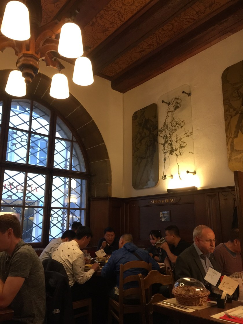 For dinner we went to Zeughauskeller, a beer hall. Duke had garlic sausage and sauerkraut and I had beef stroganoff. For desert we had strawberries and ice cream. It was by far the best meal we have had in Zurich.