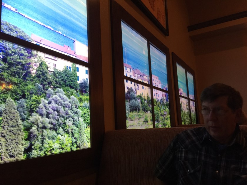 There may not be many food pictures on this trip. We ate in the Italian restaurant at the Westgate Casino/Hotel where we are staying. We enjoyed watching the Italian scenery being scrolled across the screens next to our table.