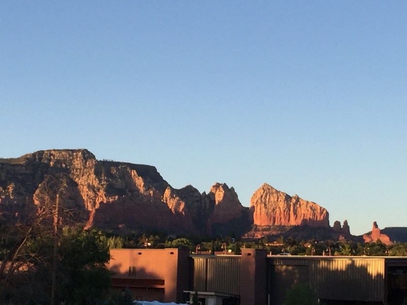 Tonight we are in Sedona. We didn’t do the planned hike today but we did do a lovely stroll up to the top of the hill in the resort where we are staying. The sunset lit up the red rock surrounding us.