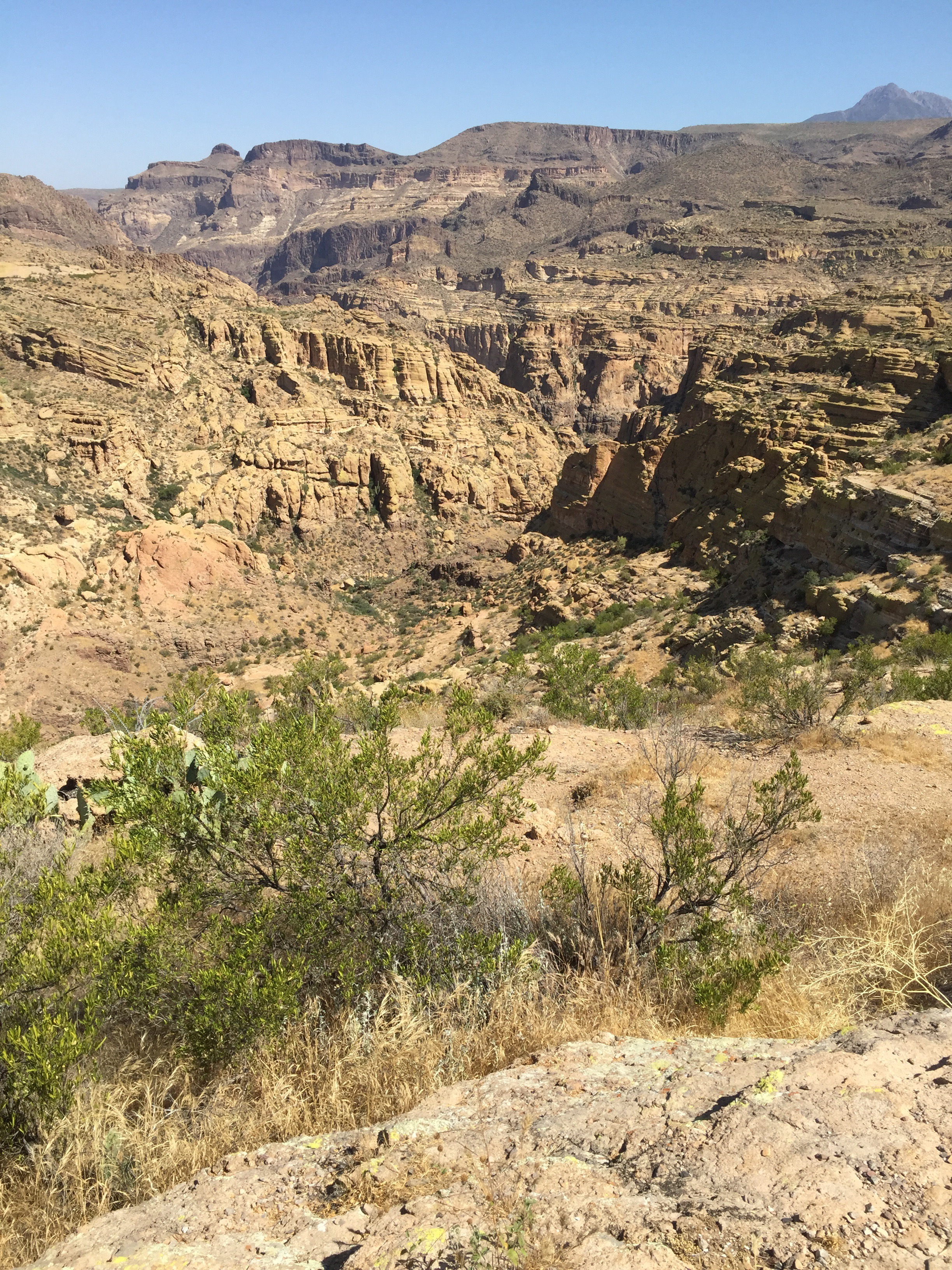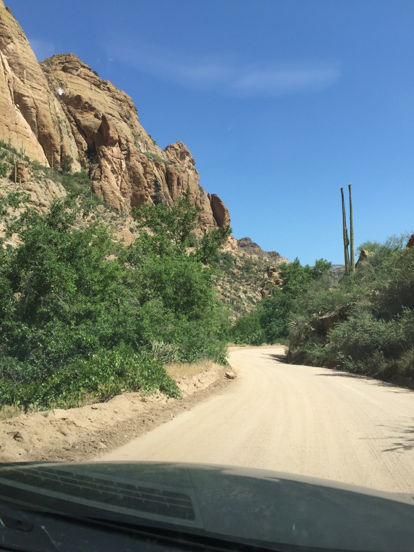 This morning we left Phoenix and took the Apache Trail up into the Superstition Mountains. First we came to Canyon Lake.  The road turned to gravel and the scenery to stunning canyons.