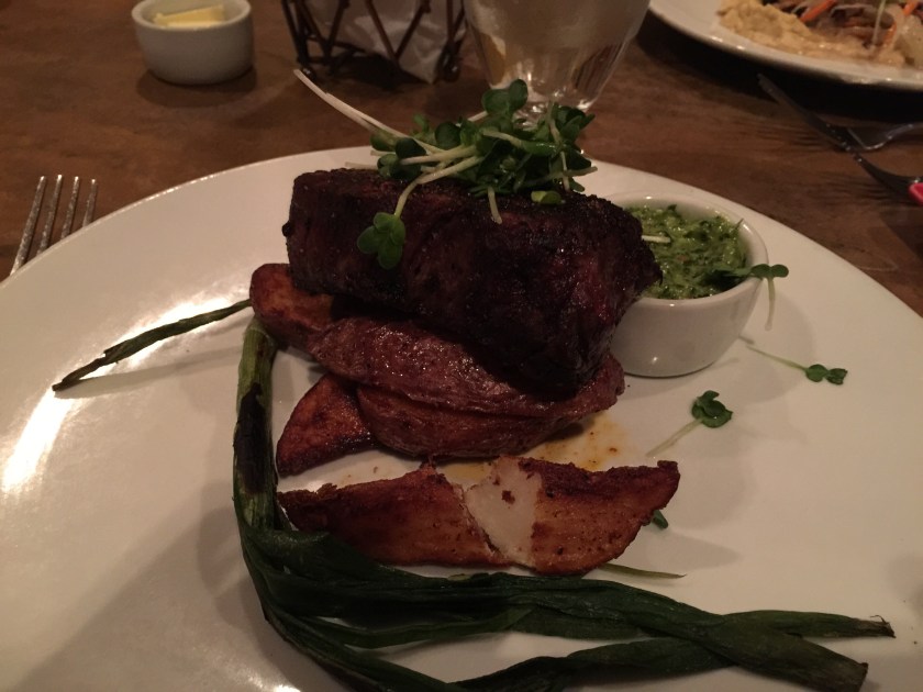 Then I had the salmon on a blackberry slaw and polenta and Duke had the beef tenderloin.