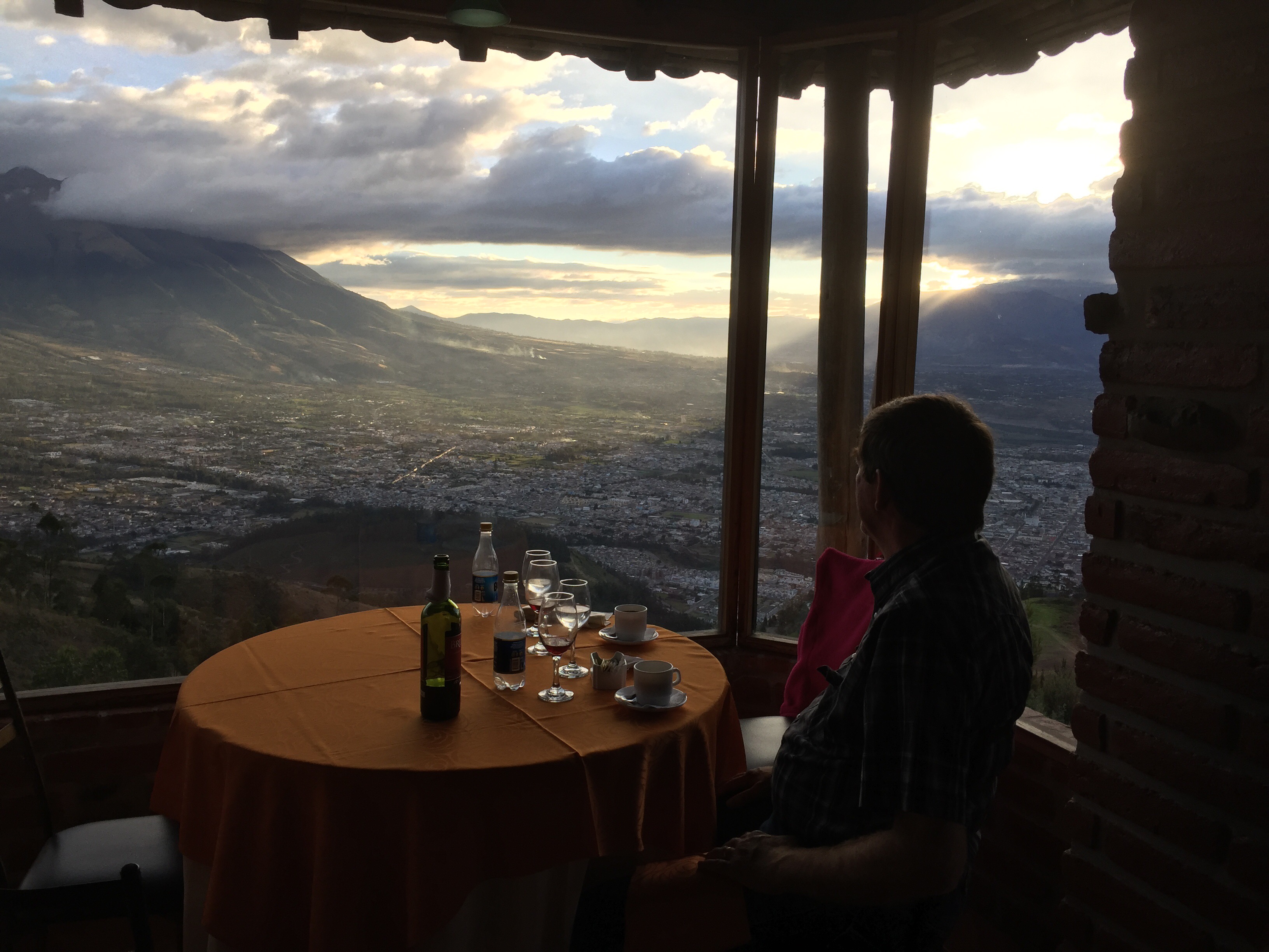 Today we moved just a few miles north to the town of Ibarra. We took a taxi. Although our hotel is less than 5 miles east of Ibarra it took our taxi almost half an hour to drive up the mountain to our hotel, La Estelita. What a setting.