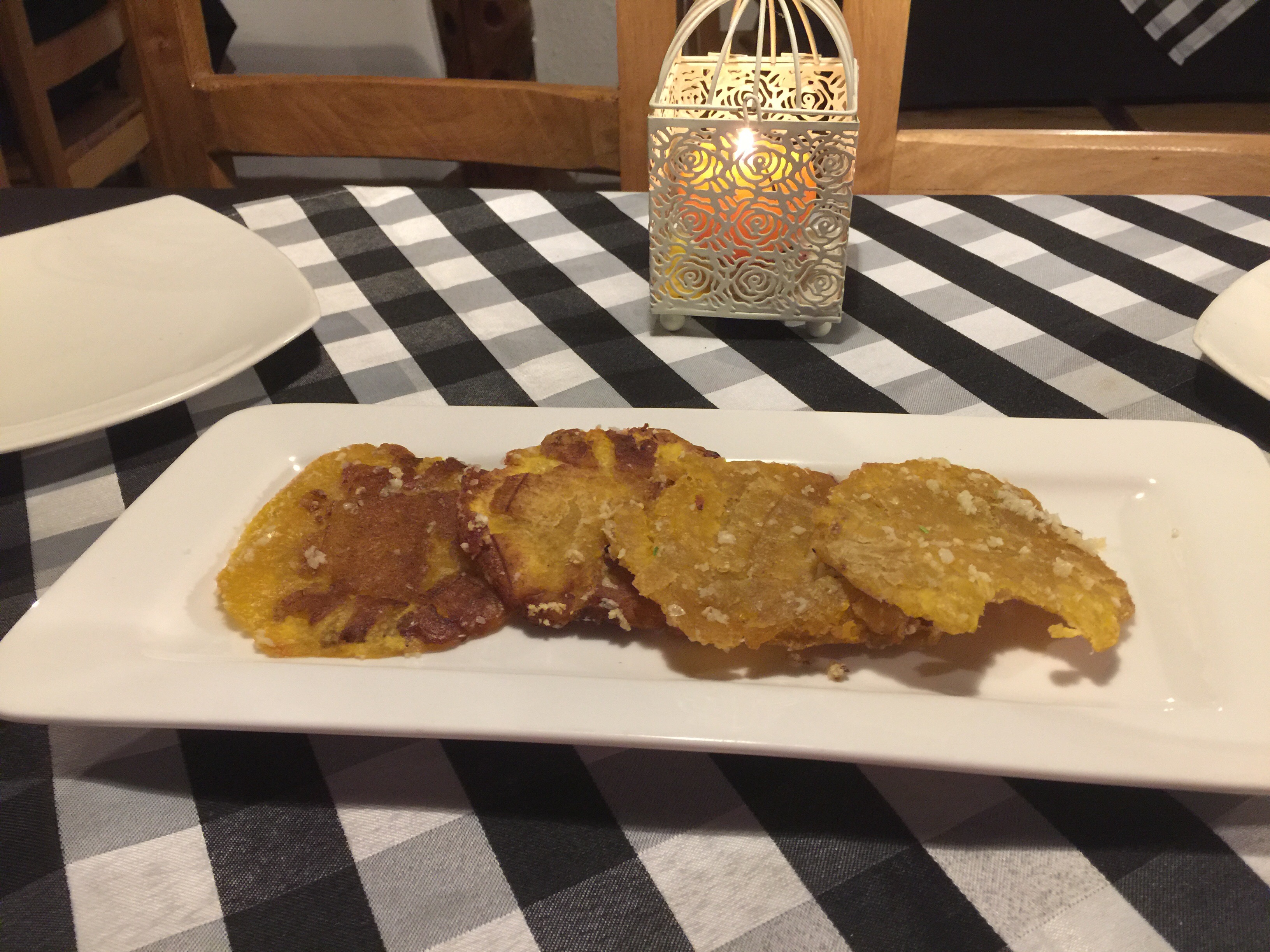 We had an excellent dinner at a small restaurant about half way between town and our hotel. We started with fried plantains with garlic.