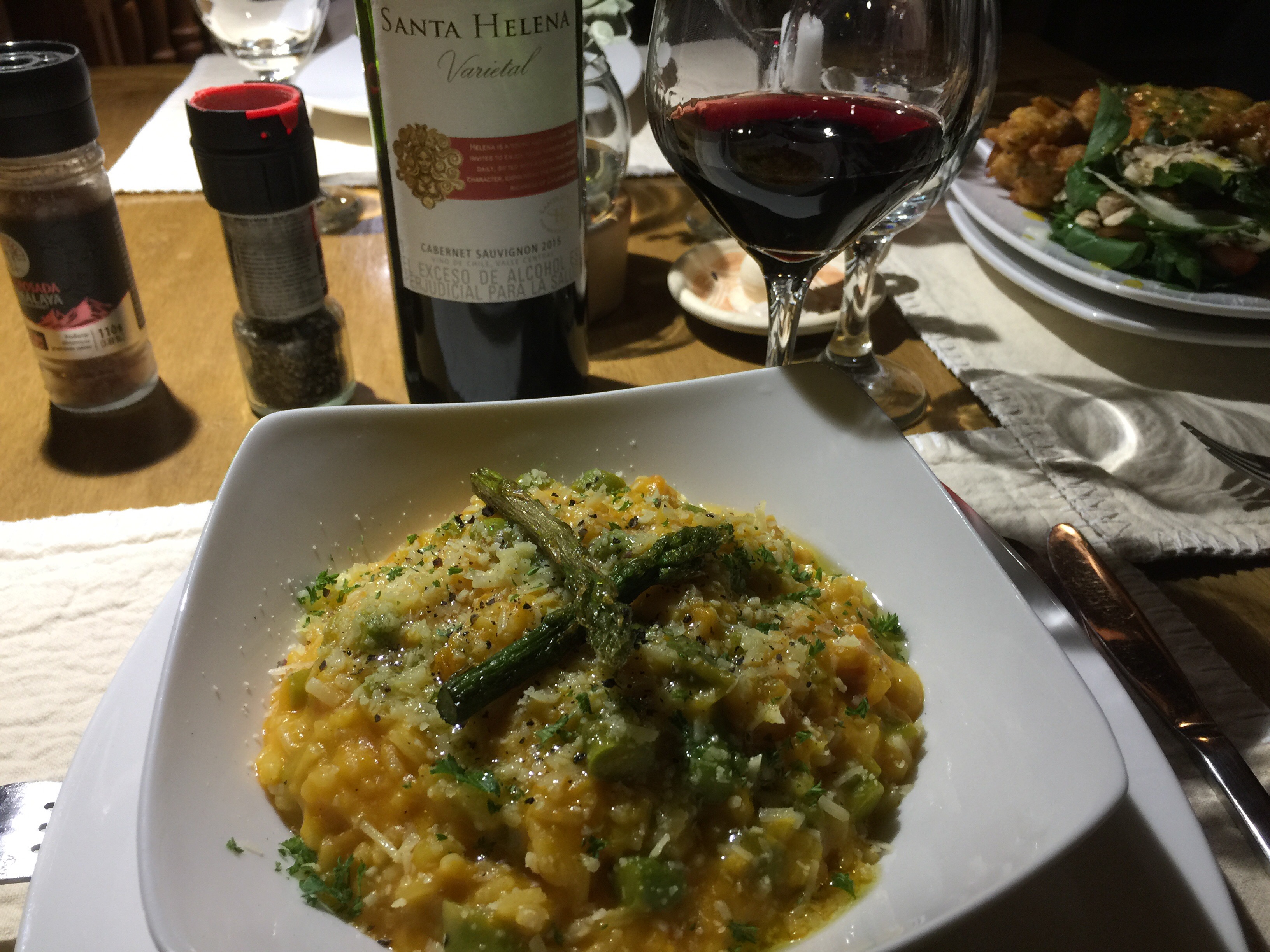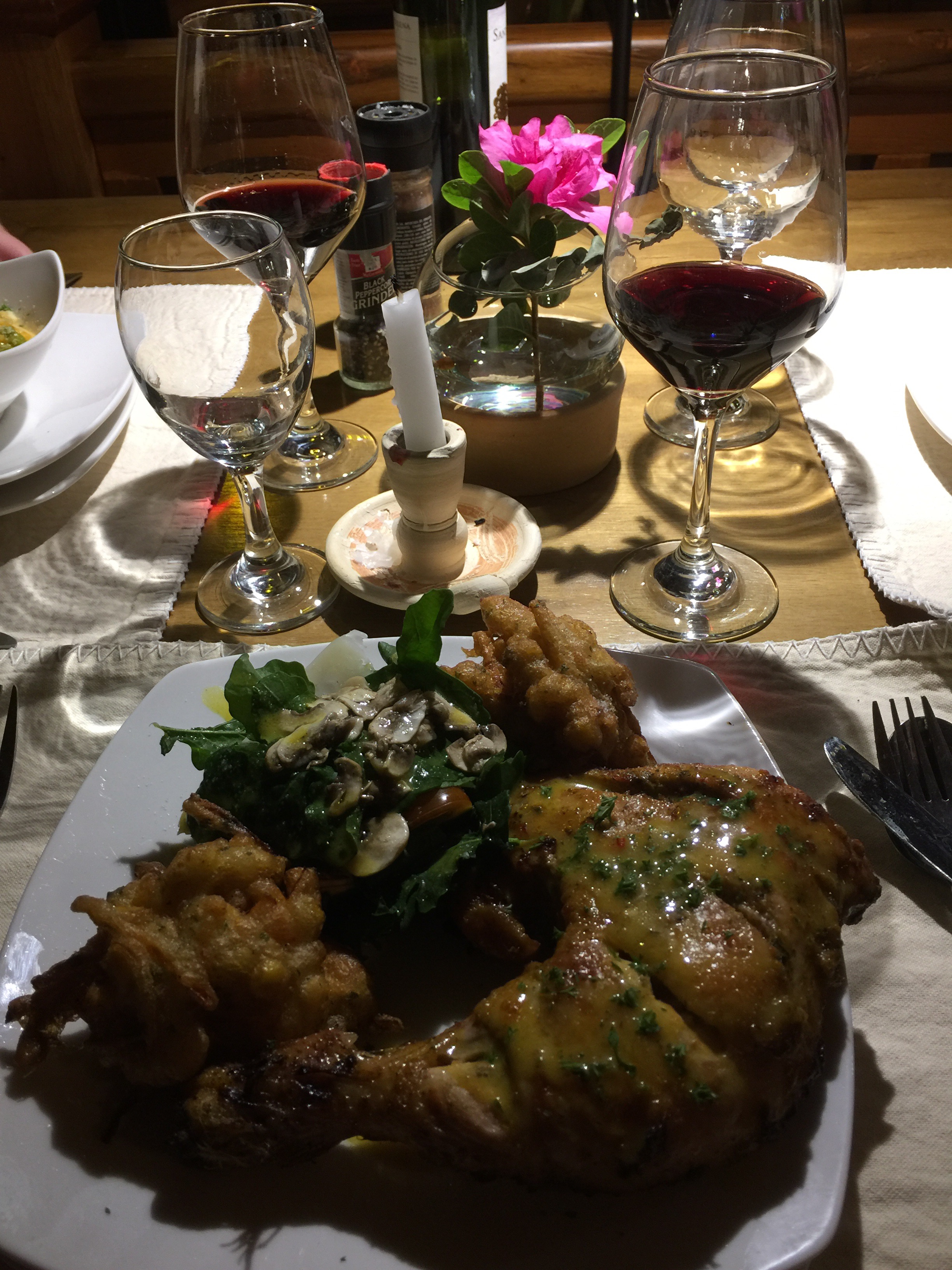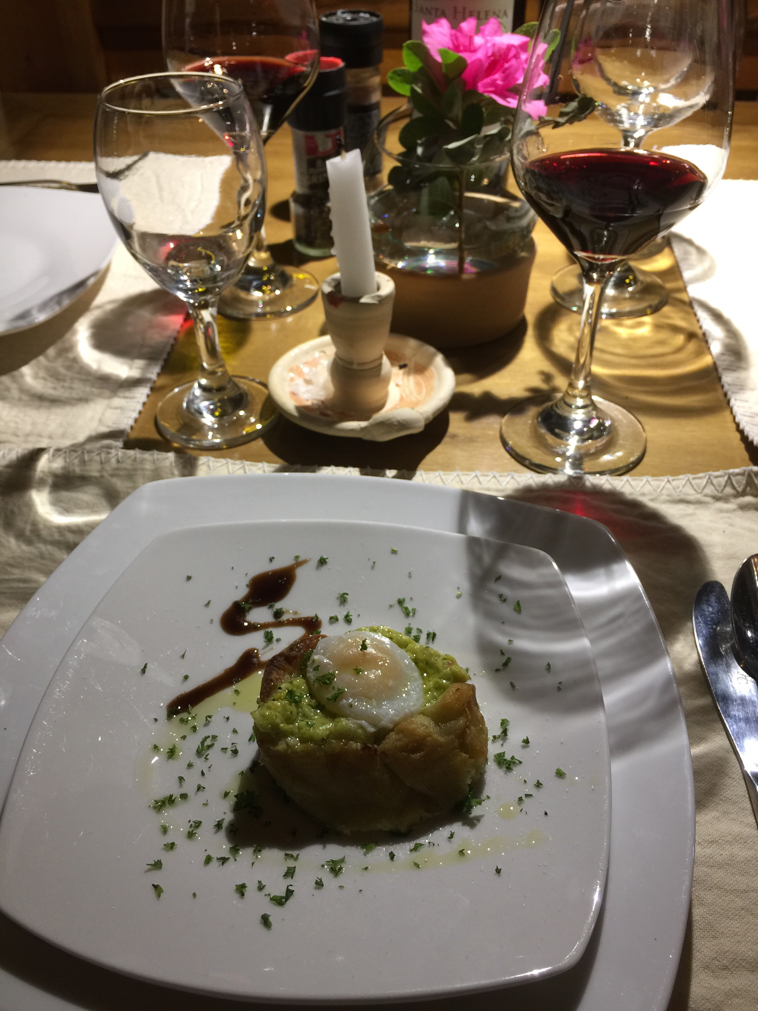 Dinner at the hotel. My appetizer was topped with a quail egg.