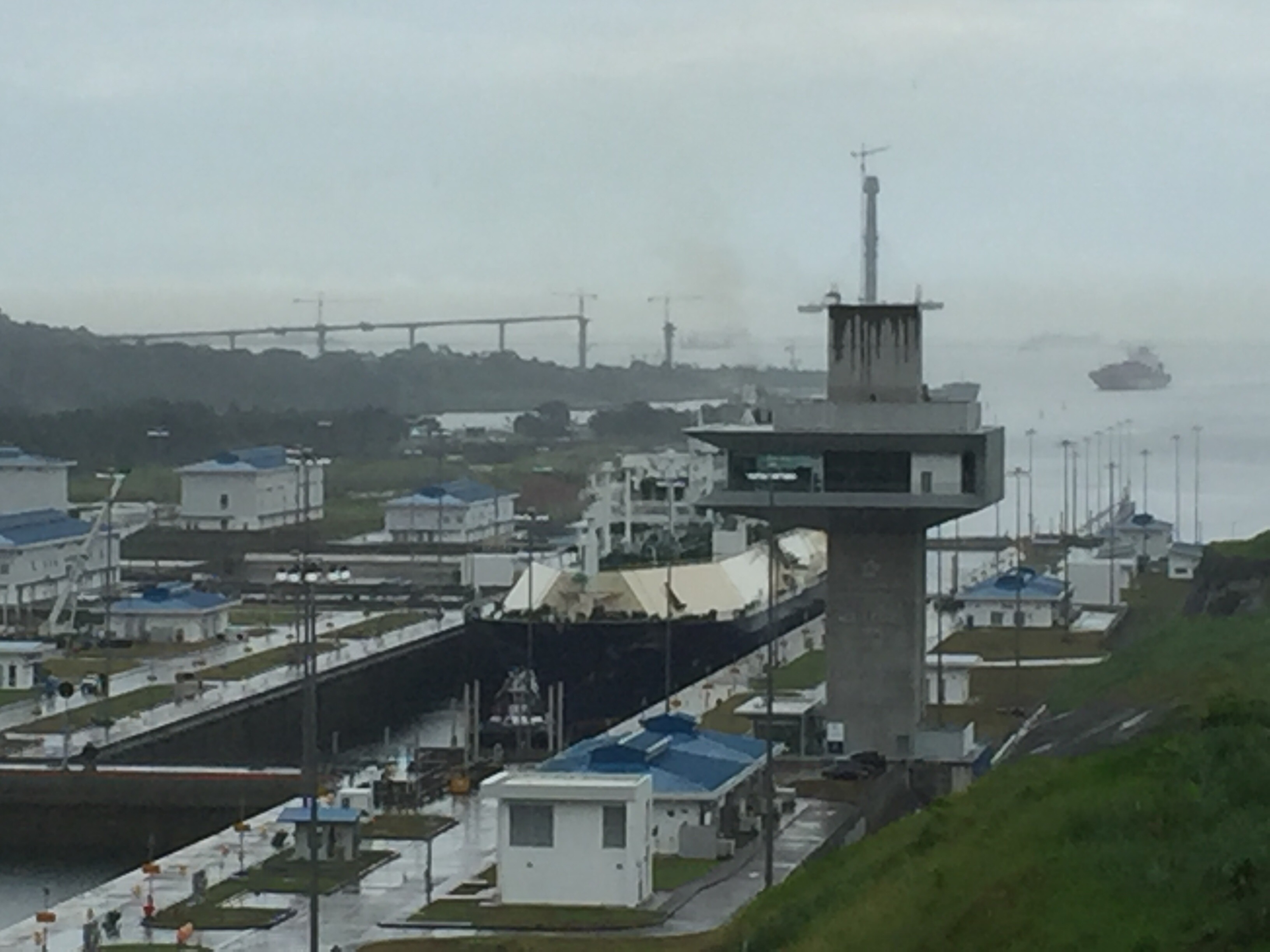 In Colon we took a taxi to the visitor center at the new locks. The new locks are massive. They are 180 feet wide as compared to 110 feet wide for the old locks. And they have rolling gates that slide in and out of a cut in the wall. We got to watch a big liquid natural gas carrier go through the first lock.
