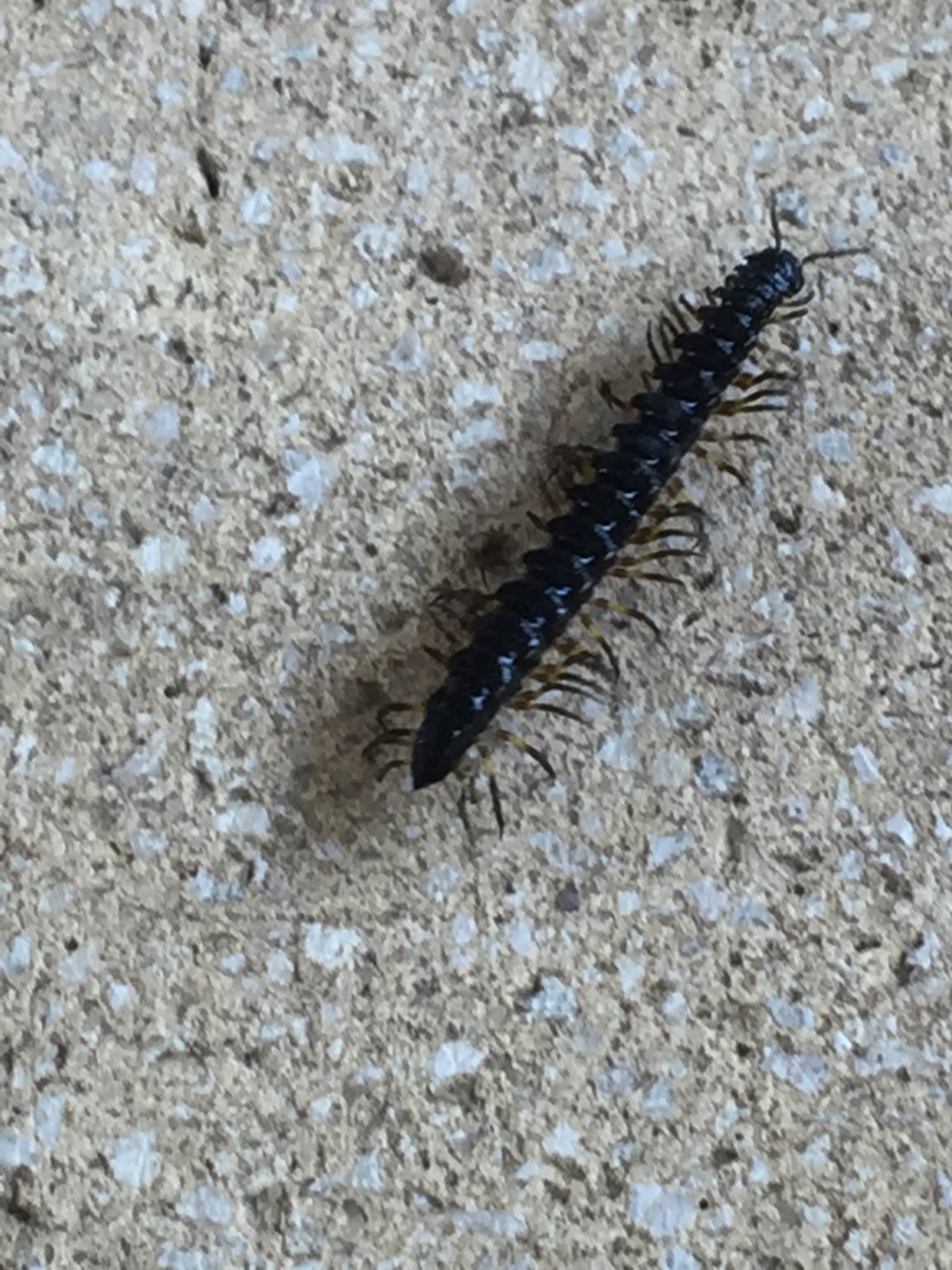 We took pictures of bugs and lizards. I assume this is a centipede.
