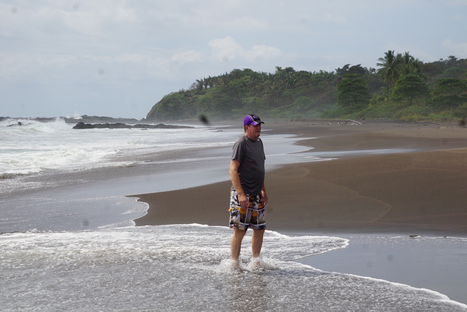 We waded in the surf.