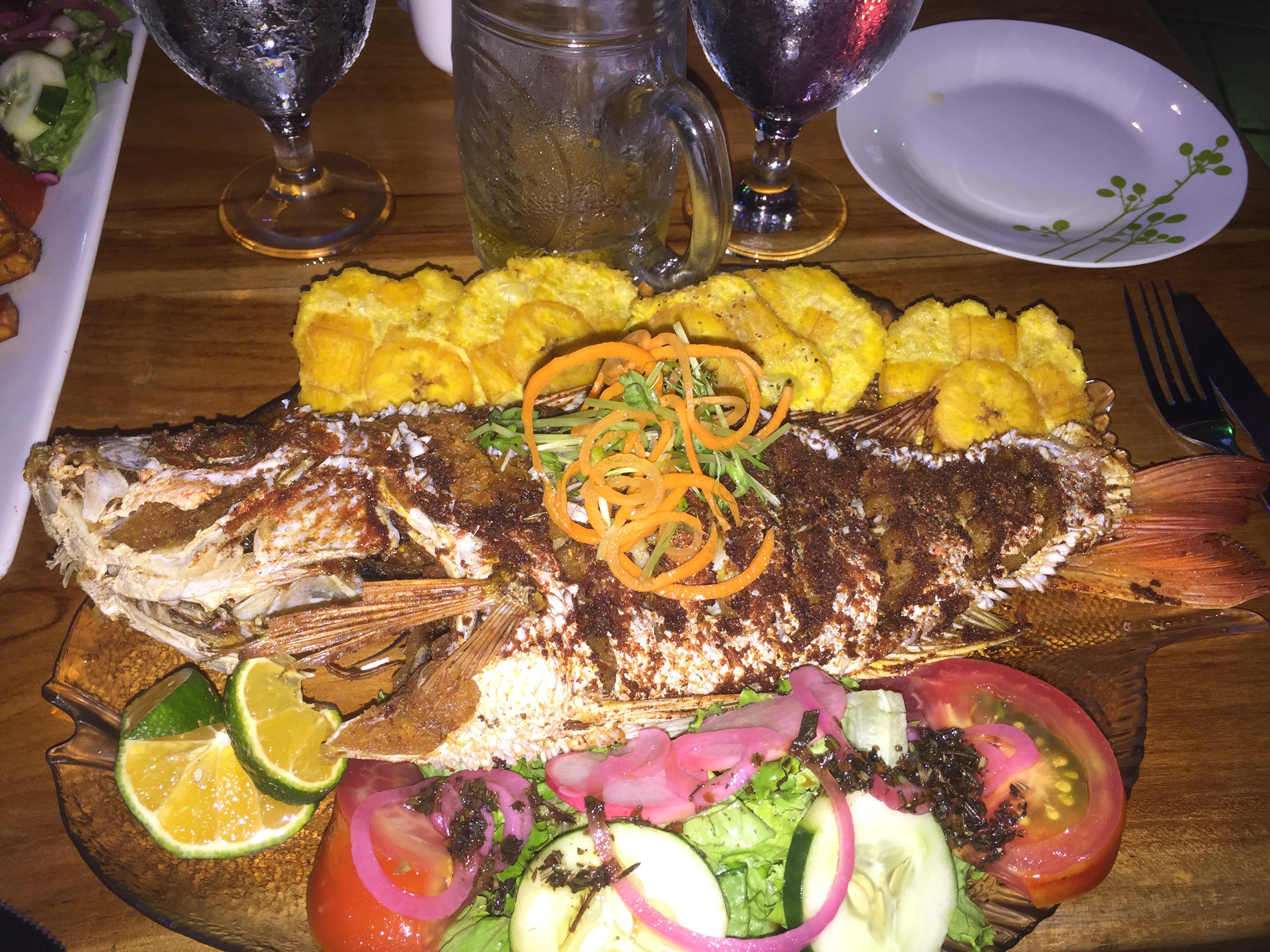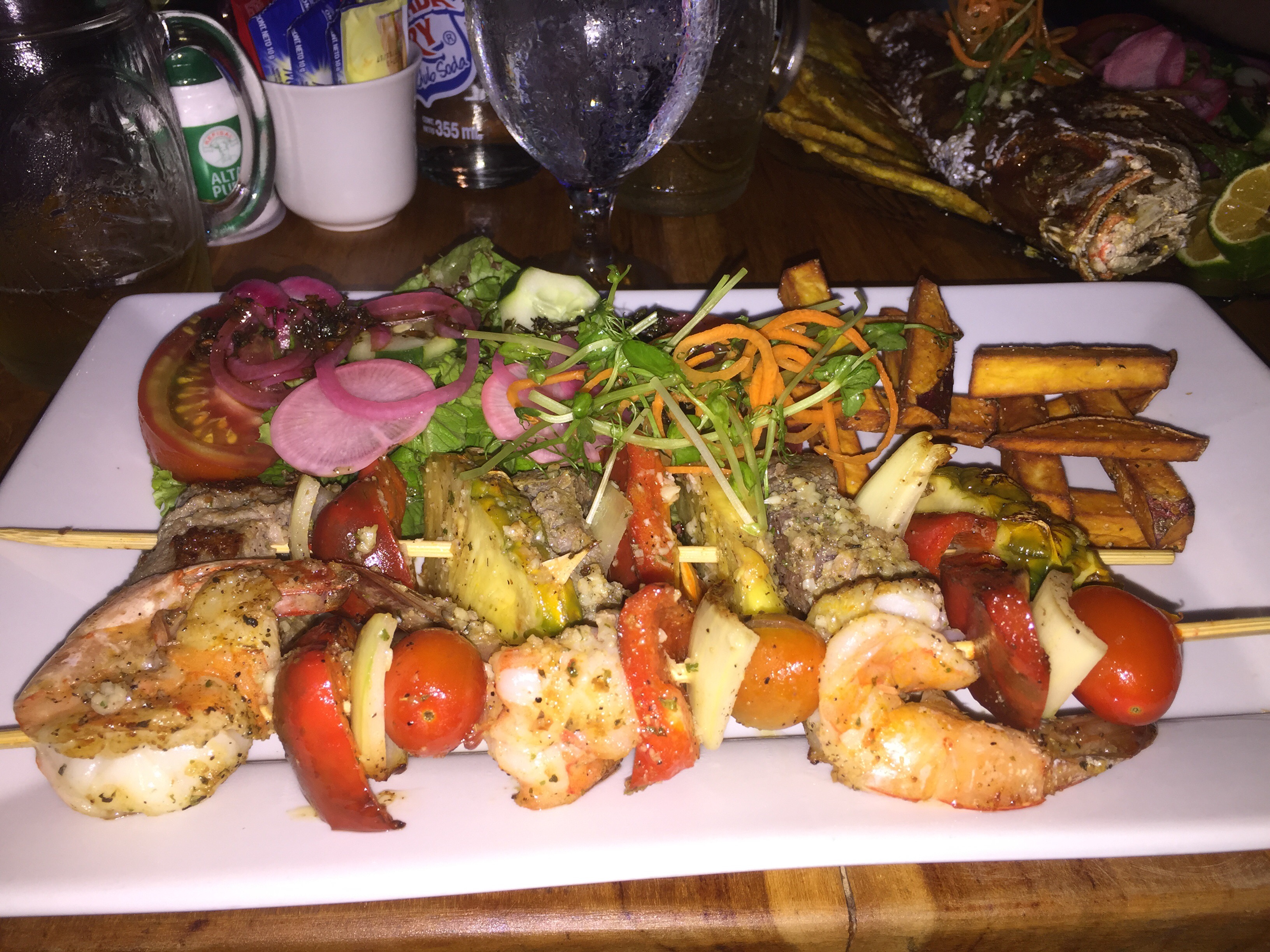 The food was very good. Duke had a whole red snapper and I had shrimp and steak skewers.
