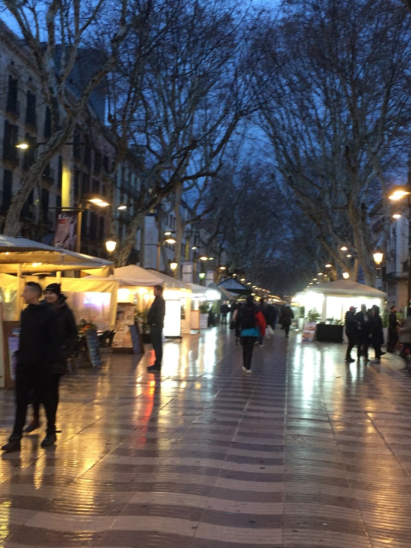 In Barcelona we took the Metro into town. The trip cost us €4.60 each. We are staying in a small hotel called K+K Hotel Picasso on the edge of the Gothic Quarter. After a nap we went for a walk to try to stave off the urge to sleep and to defeat jet lag. We walked up Las Ramblas and through the Gothic Quarter.