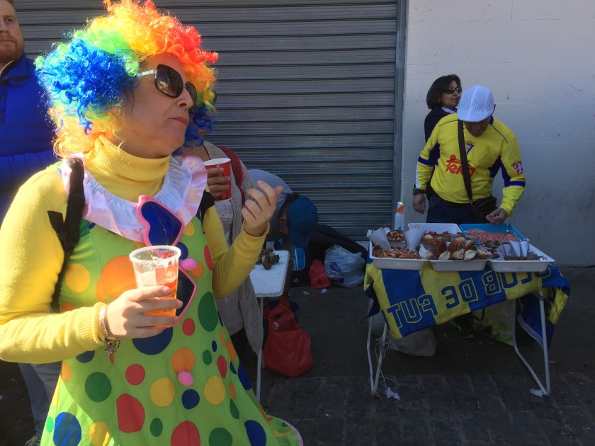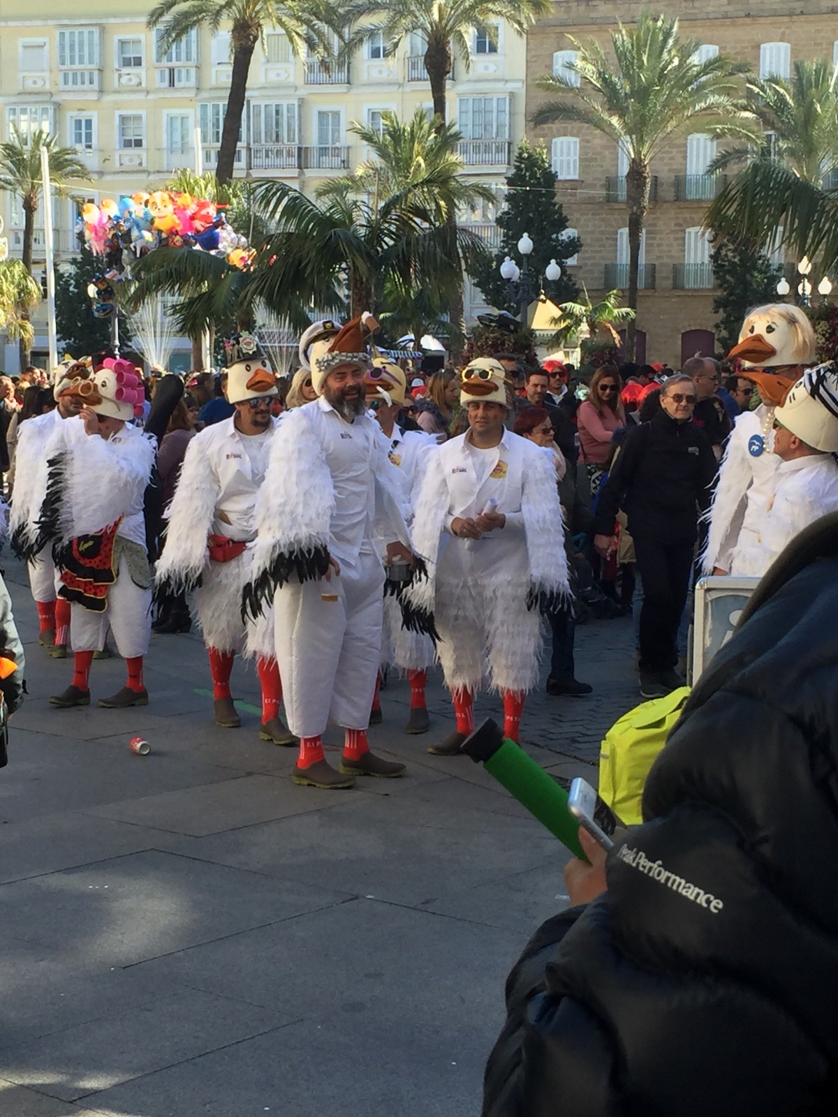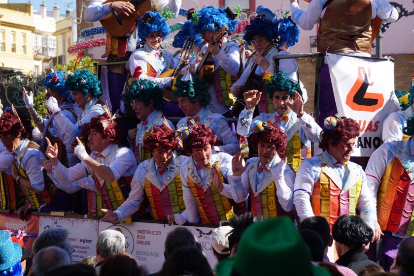 Part of the Cádiz Carnaval is a ironic comedy singing competition. We watched several of the groups on floats doing their comical dances and songs.