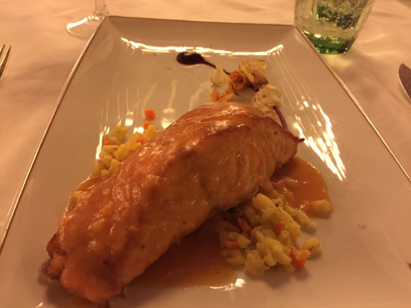 Duke had salmon for the main course and I had calamari.