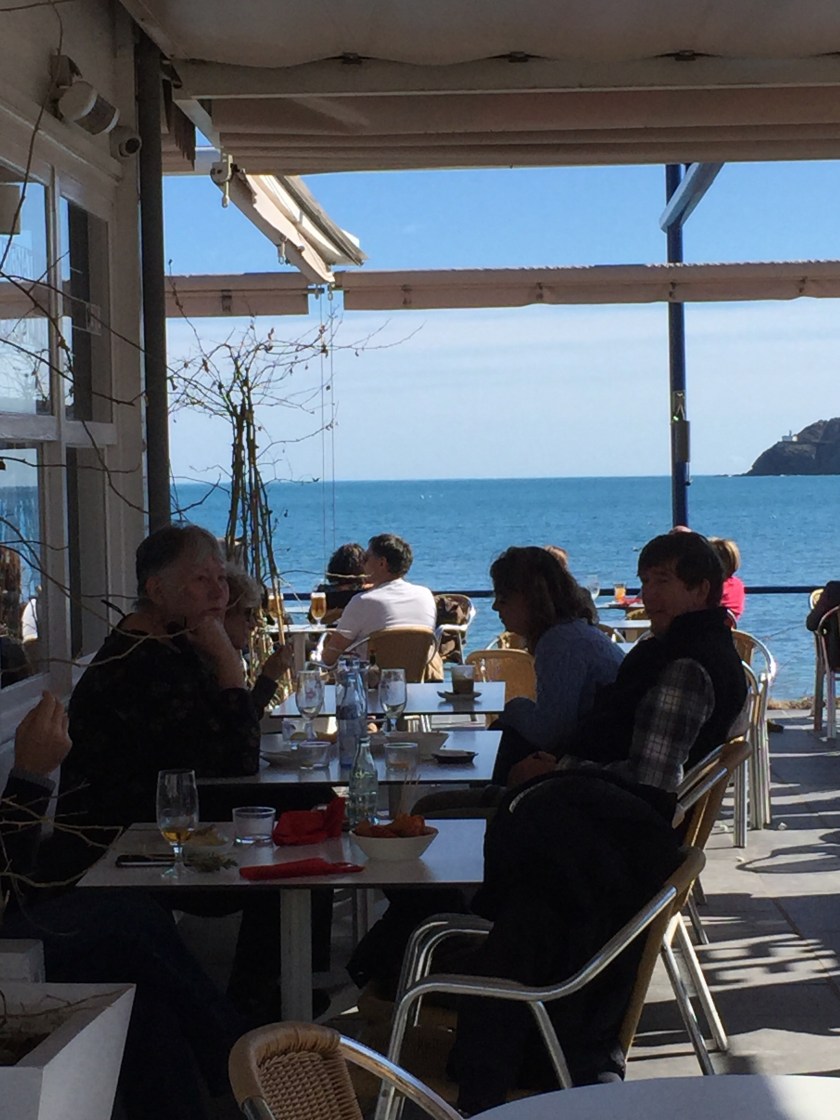 After enjoying the house and garden we drove into the nearby town of Cadaqués for lunch. The day started overcast but turned sunny. We sat in an outdoor restaurant by the beach and enjoyed our lunch and the scenery while we people watched the Saturday visitors.