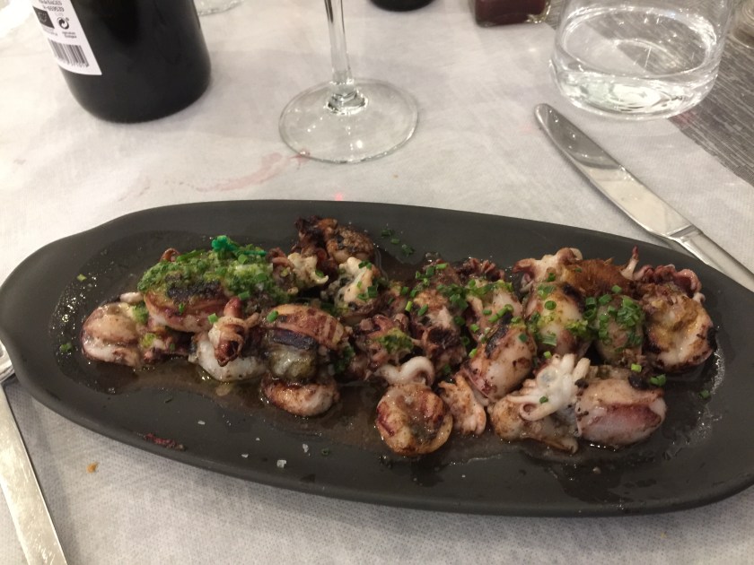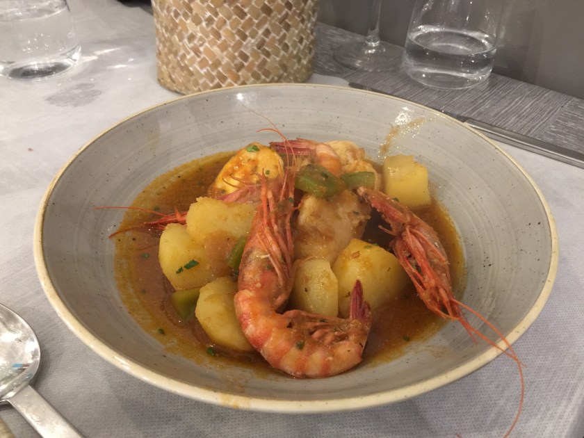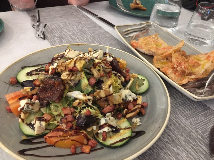 For dinner we went to another great restaurant in Roses recommended by the hotel owner. At Falconera We shared a fig salad, I had a fish stew and Duke had cuttlefish. The prawns and anchovies were local.