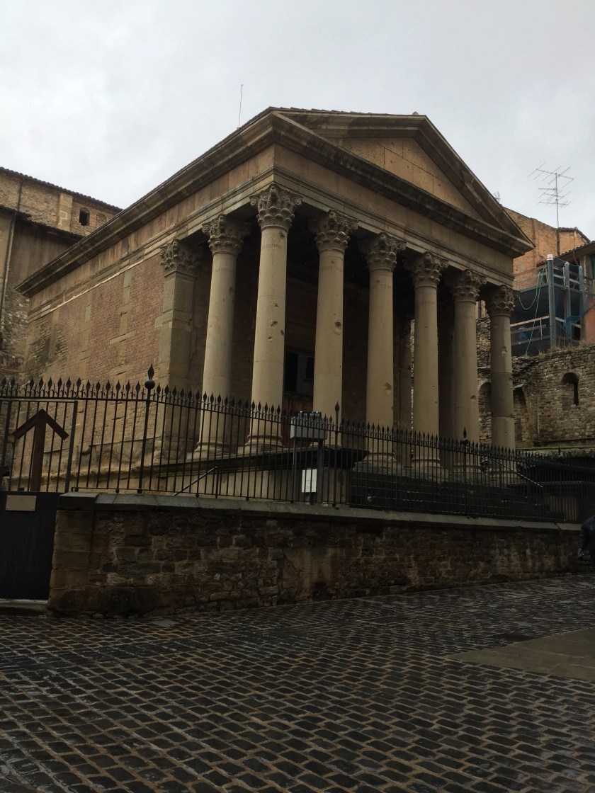 From our view overlooking the reservoir of Sau we drove into the town of Vic and parked. We walked around the town in the rain marveling at the beautiful old buildings. This Roman temple was built in the first century AD.