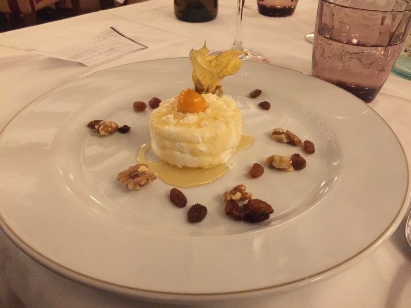 For desert I had strawberry with cheese ice cream and Duke had cottage cheeses with honey.