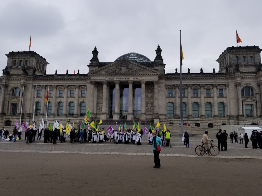 And from there to the Reichstag. We would have gone in but it turns out you need to book in advance. Maybe next time. There was a protest going on about Turkey murdering Kurds when we walked past.