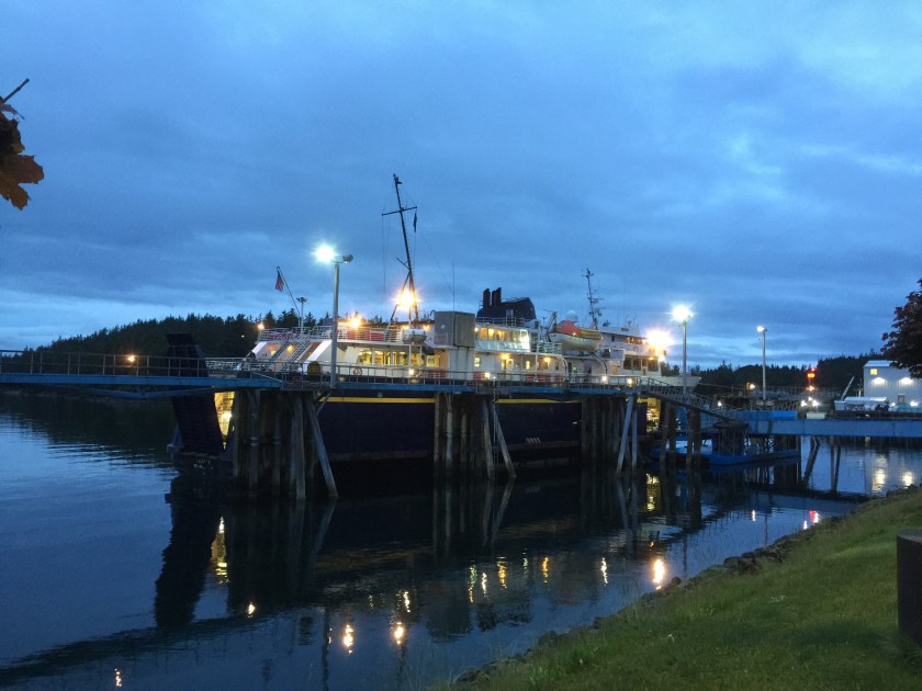 We waited in the Juneau ferry terminal until six am to board our ferry for Gustavos, the port for Glacier Bay National Park. The ferry ride was four hours and I slept the whole way.