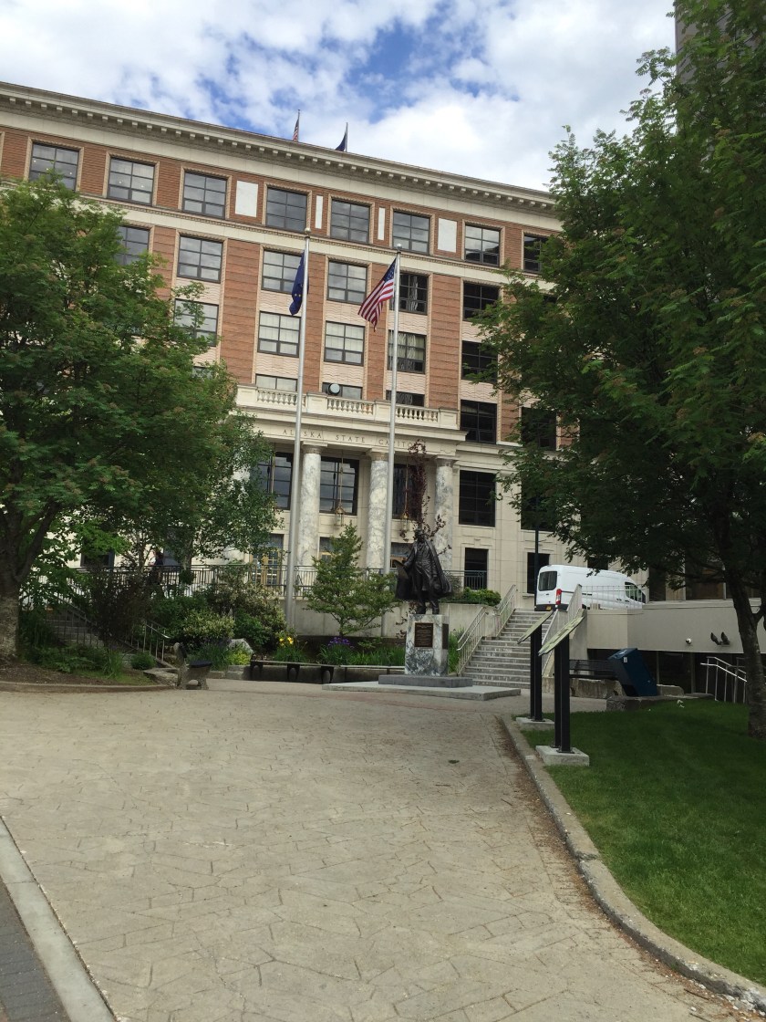 Duke and I make it a habit to visit and tour State capitals whenever we get the chance. We have a spreadsheet at home to keep track but I think that together we have been to about 26. Today we enjoyed the self guided tour of the Alaska State Capital.