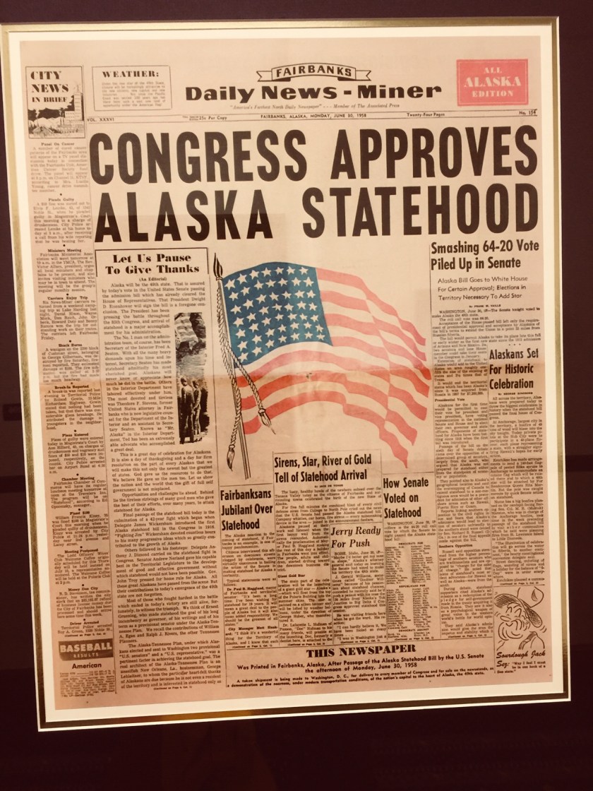 After exploring the Capital we went to the Juneau-Douglas City Museum. It is a small museum but it had a lot of interesting information about the history of fishing, mining, and politics in the Juneau area. I had a lot of fun with the exhibits.