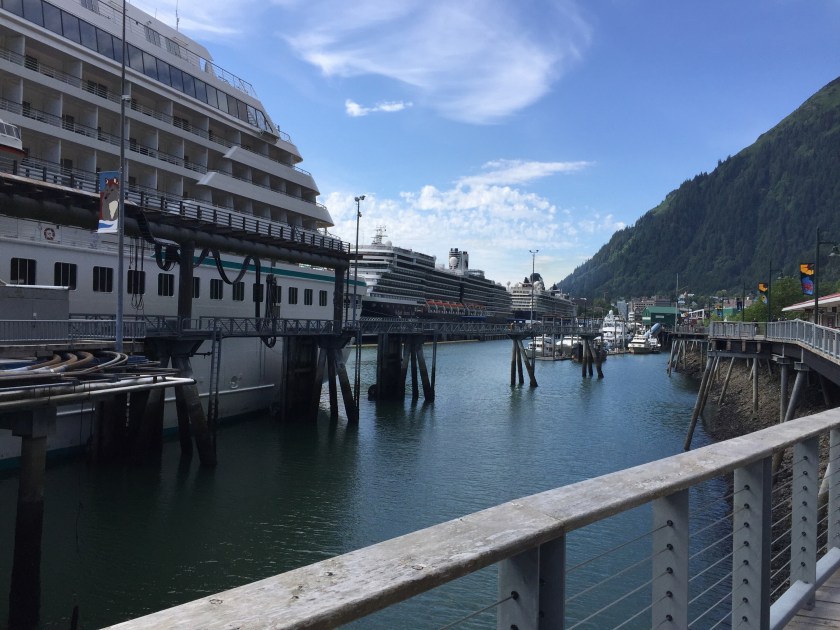Finally we browsed the stores and walked up and down the boardwalk beside the three gigantic cruise ships that were in Juneau for the day.